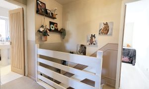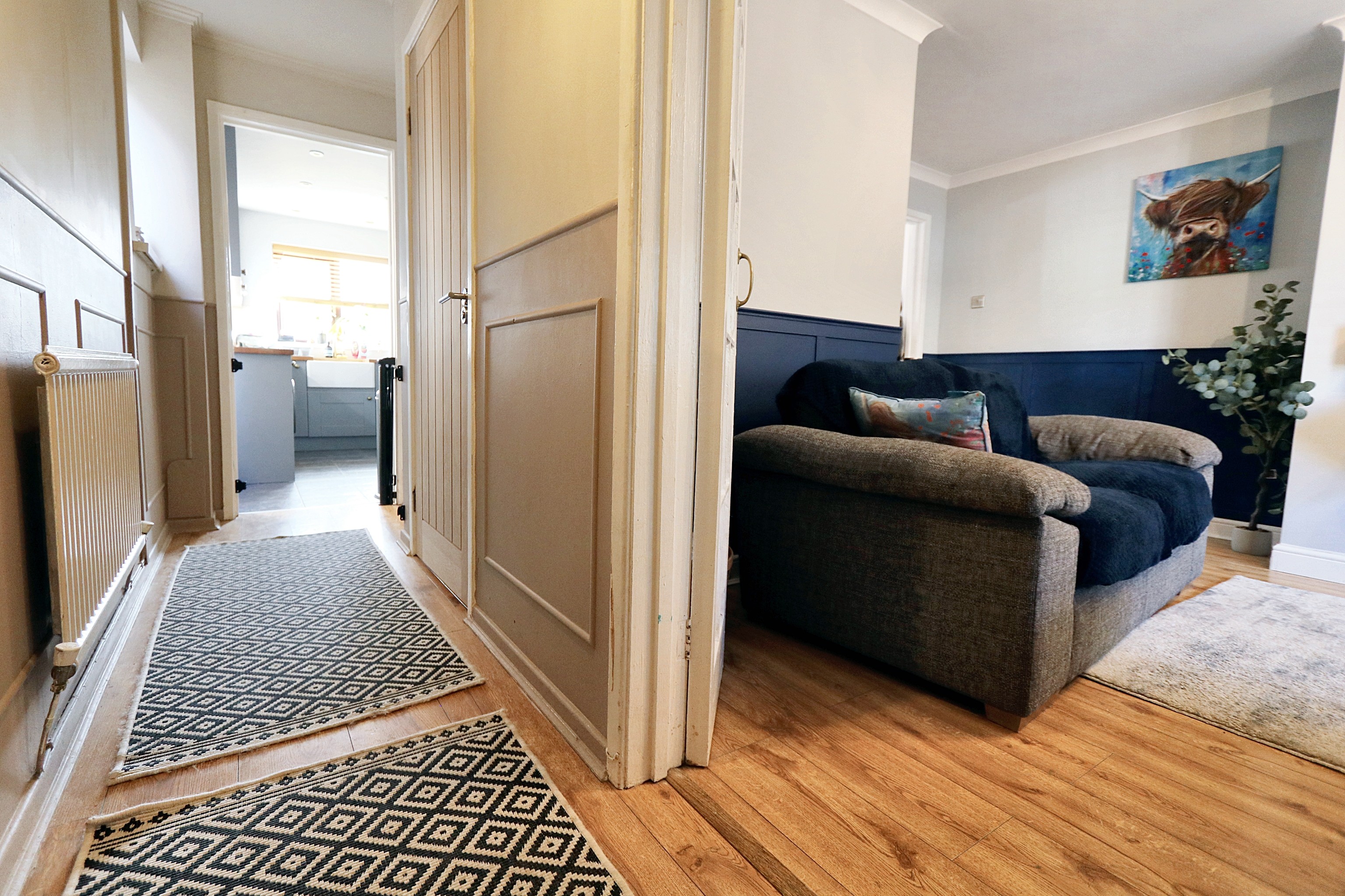 Recarpeted in 2025 and with matching Oak panelled doors (new 2025) to the 3 bedrooms and bathroom. Loft hatch.