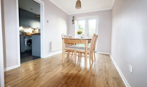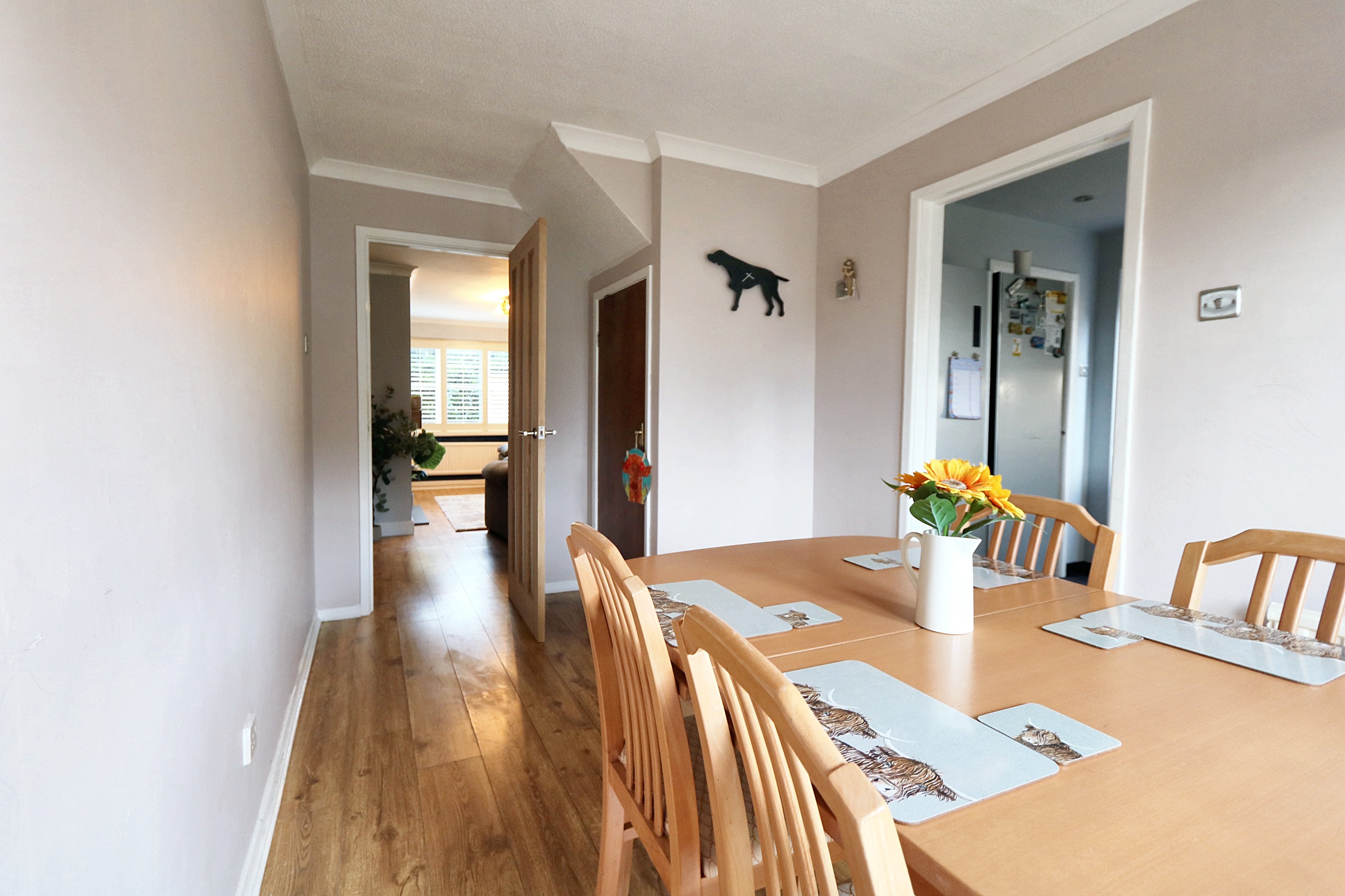 With laminated flooring, a radiator, coved ceiling and French style uPVC double doors leading out to the rear garden. Open door access to the kitchen and a final door leads to a handy under stair cupboard.