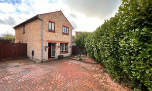 A low maintenance area generally laid to interlocking brick pavior for parking and there is also a stone chipped section ideal for displaying potted plants etc. Double wheeled gates lead to a further drive area and the detached garage. Boundary hedge.
