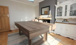 The larger dimensions is taken into the feature front bay window. Herringbone block flooring, smooth coved ceiling, picture rail and radiator. The focal point is that of a magnificent period fireplace, which has a tiled back, wooden surround and is open for coal etc.