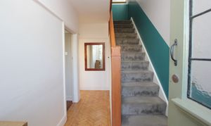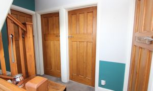 Carpeted matching the stairs and with a side uPVC window. Matching Pine panel doors give access to the three bedrooms and bathroom whilst a carpeted staircase leads to the second floor where there are two further bedrooms.
