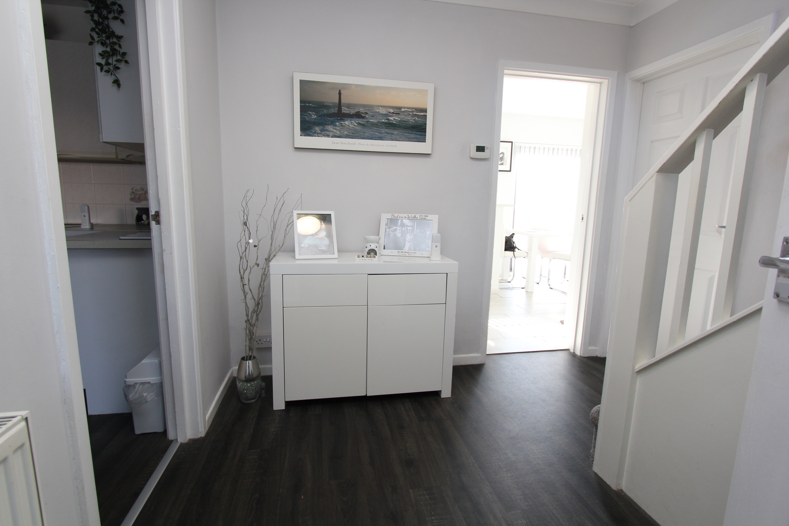 Accessed via external covered storm porch and then through a composite door with obscure glazing and additional matching window. Handy storage hooks and modern door with frosted glazing leads to the entrance hall. Vinyl flooring, matching the hall.