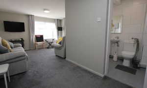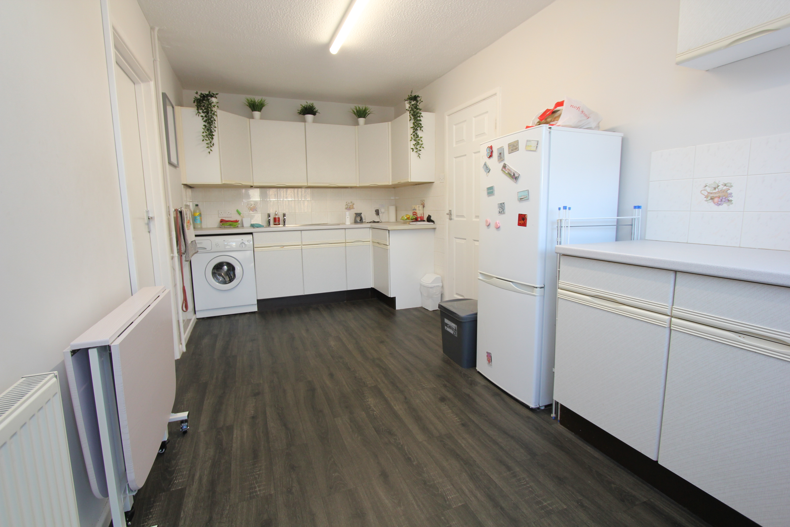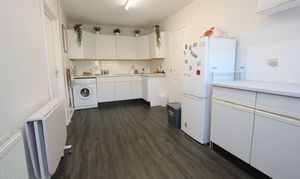 Currently used as a utility room, but previously used as a kitchen serving the self-contained wing. Vinyl flooring. Excellent range of storage units with work top space plus additional sink unit. LED strip light. Front uPVC window and door with obscure glazing returning to the front (allowing separate access to the self-contained wing). Concealed meter cupboard with fuse box. Radiator. Tile splash back areas. Fire door leads to the bedroom area of the annexe