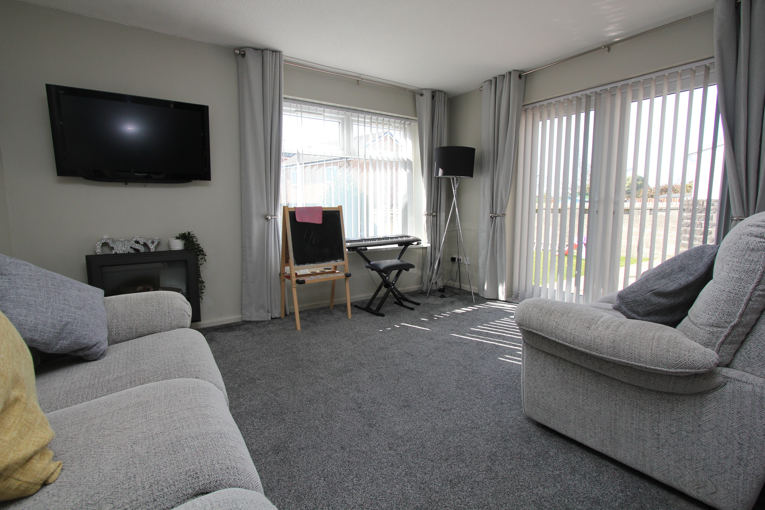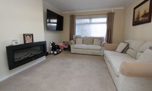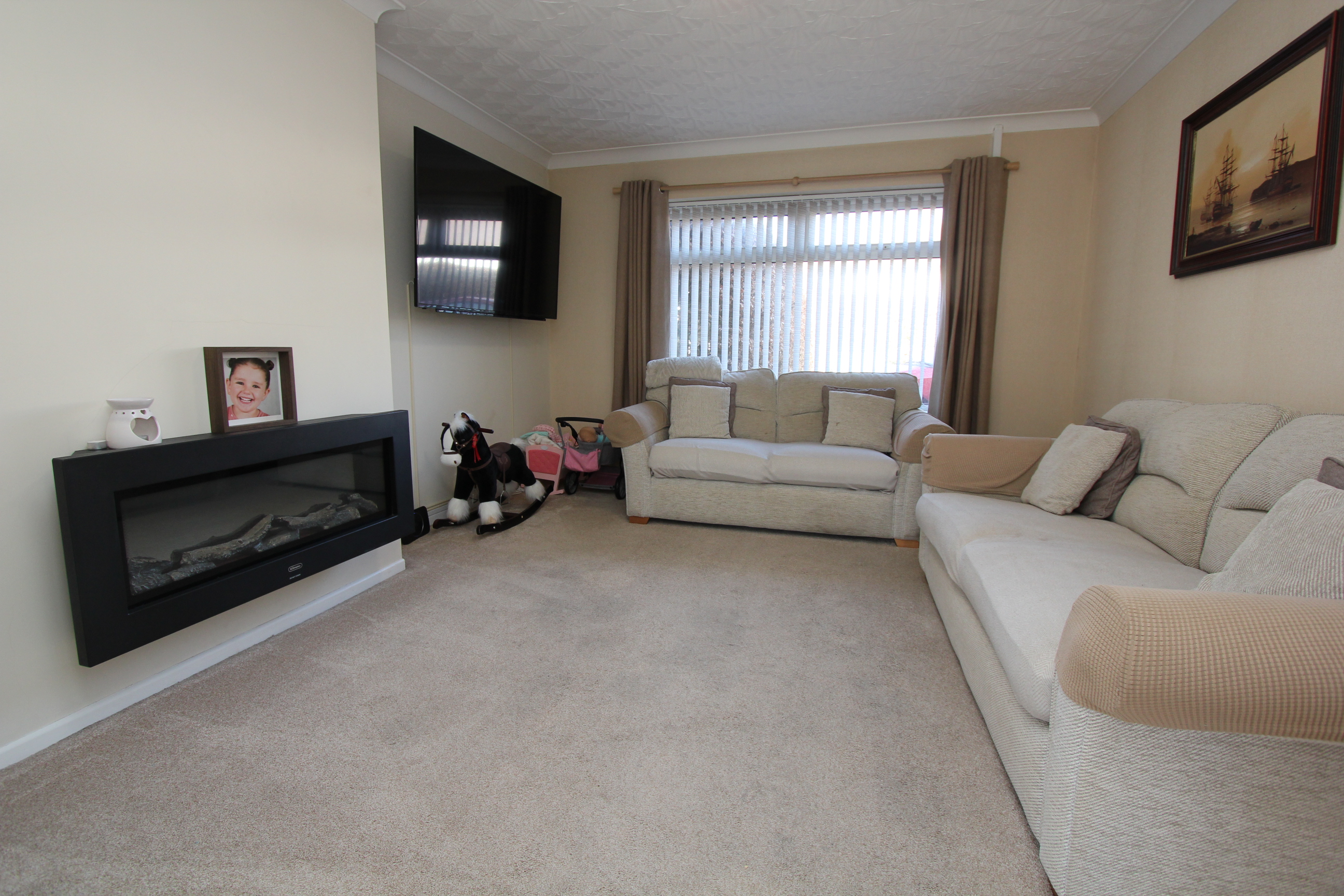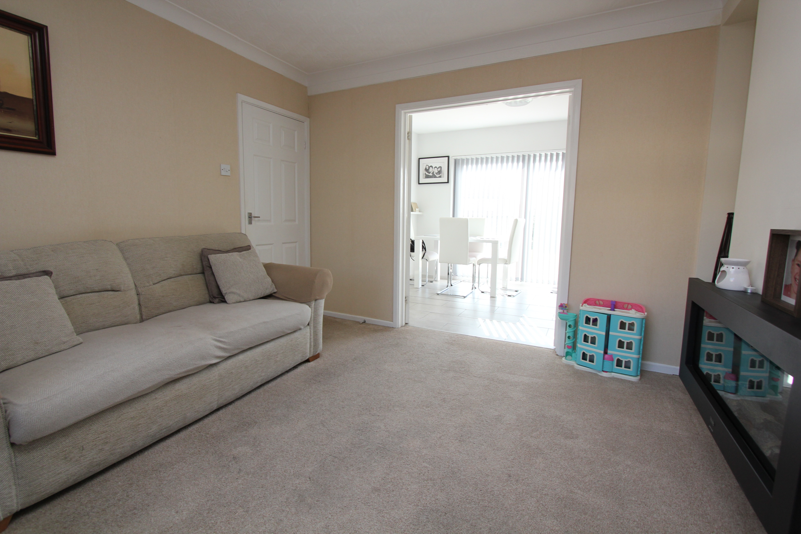 A spacious carpeted reception room with front uPVC window and double panelled doors leading to the kitchen dining room. Coved ceiling, radiator and feature wall mounted fire.