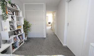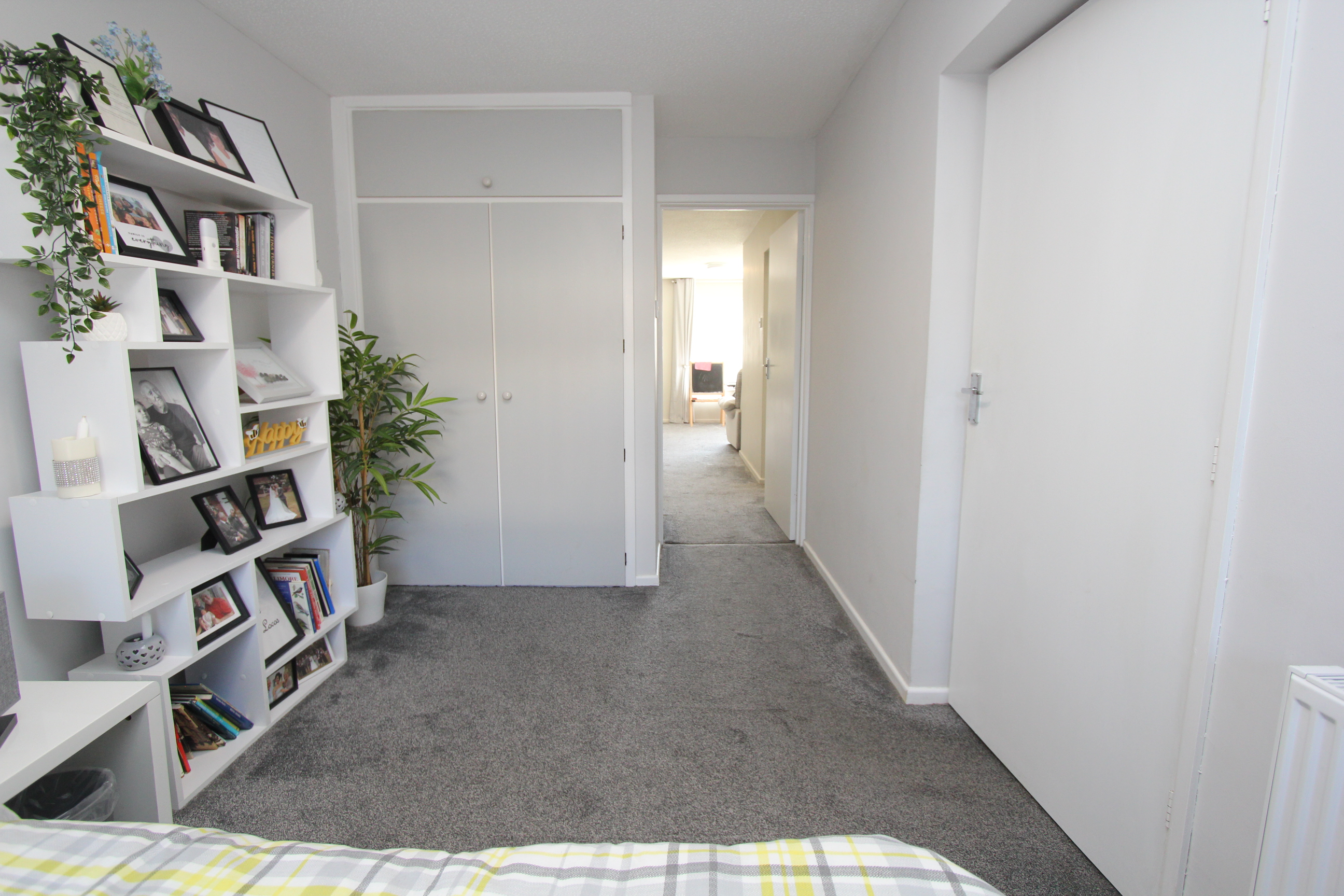 Carpeted, this excellent size double bedroom has a radiator, front uPVC window and fitted full height double wardrobe. Further fire door leads into the living room.