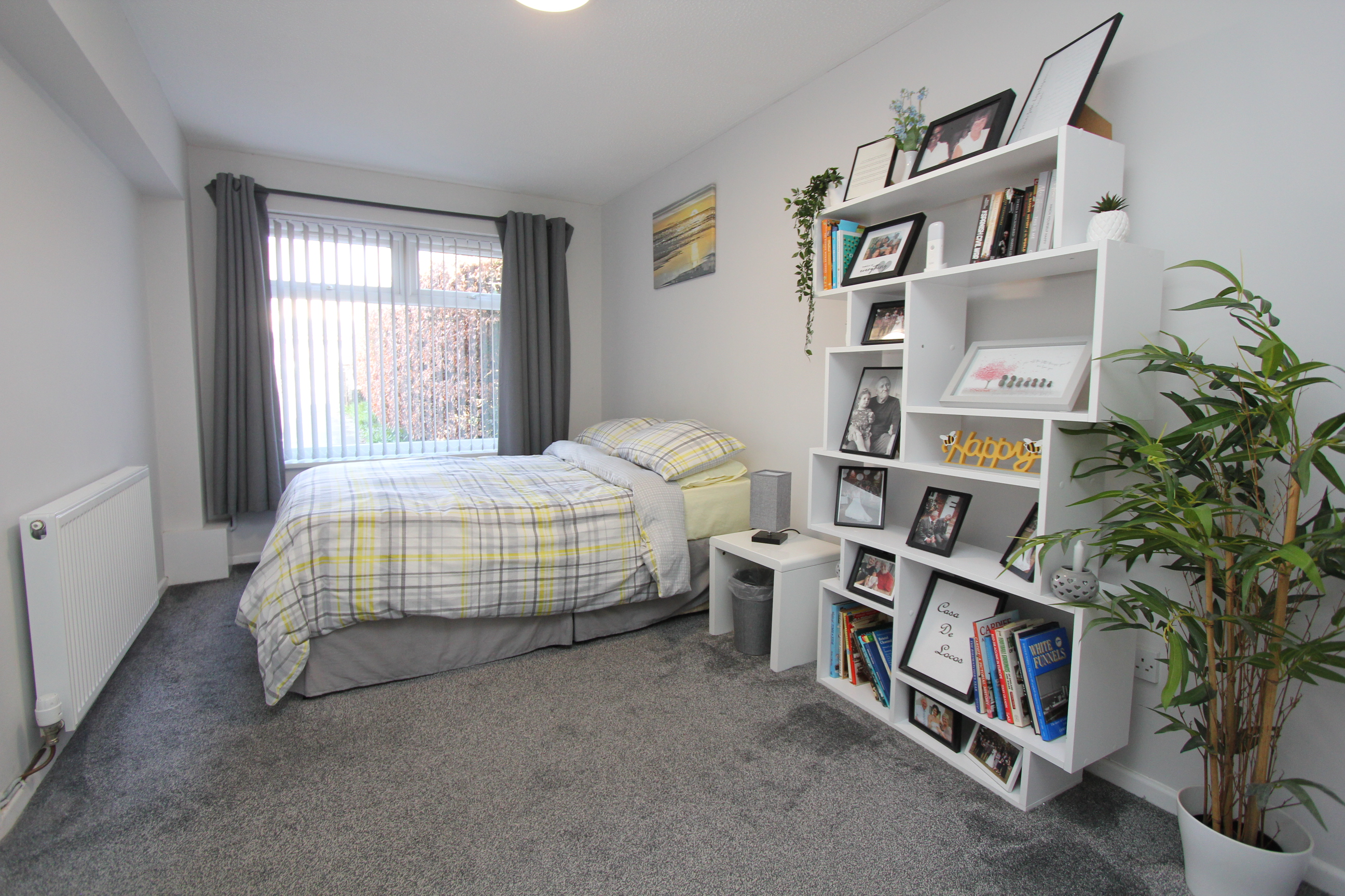 Carpeted bedroom which can take a double bed. Radiator. Rear uPVC window - some glimpses. Mirror fronted wardrobe to remain.