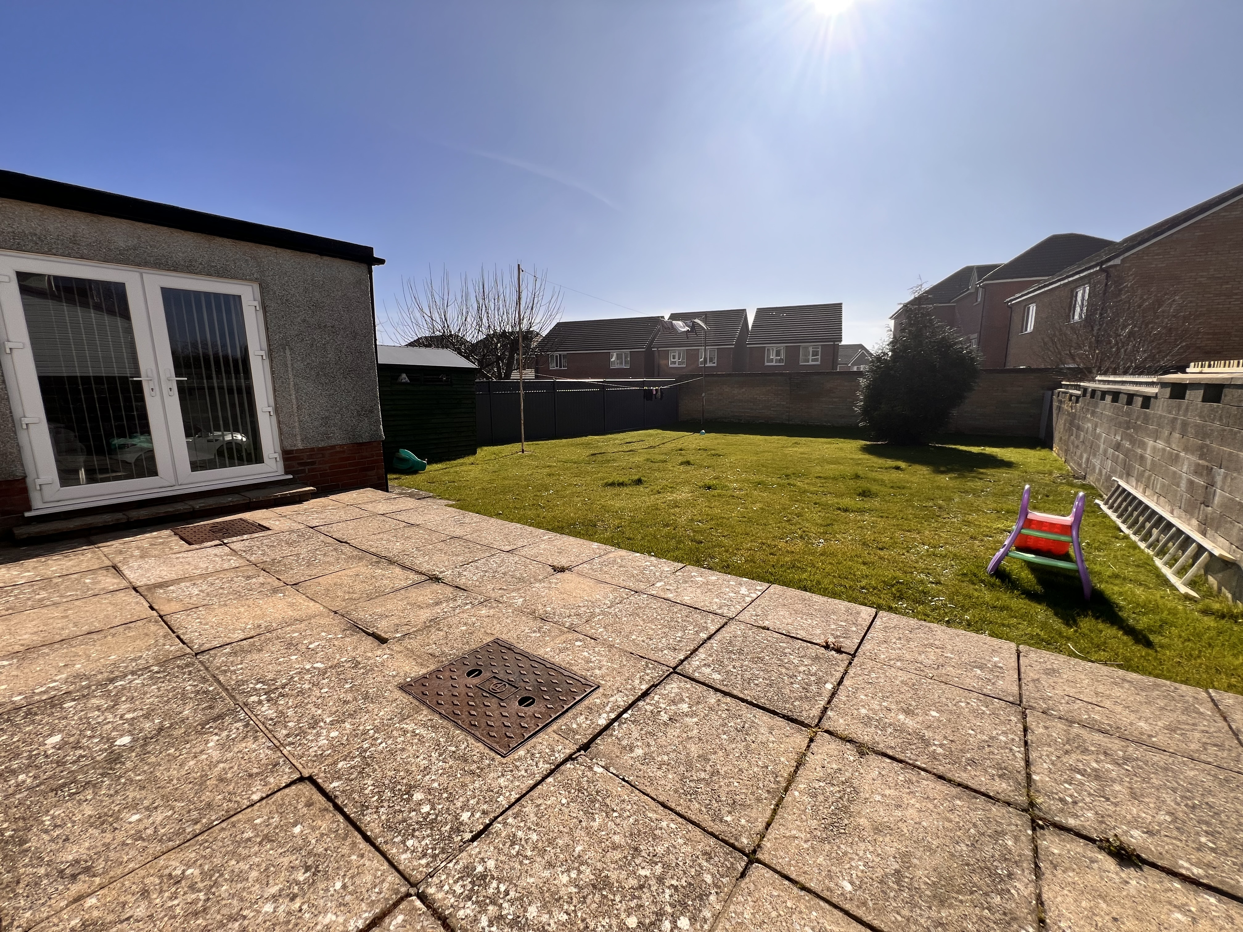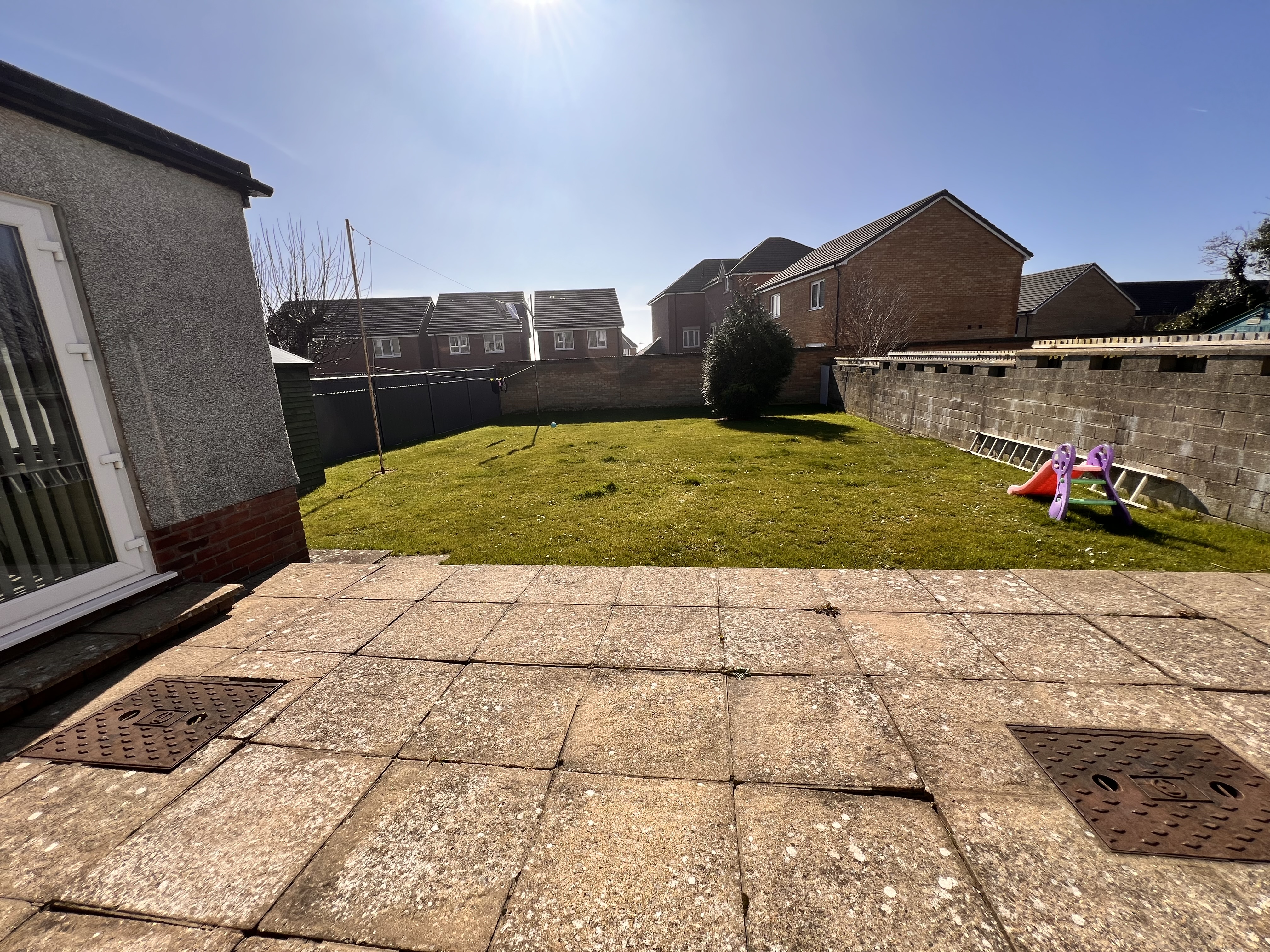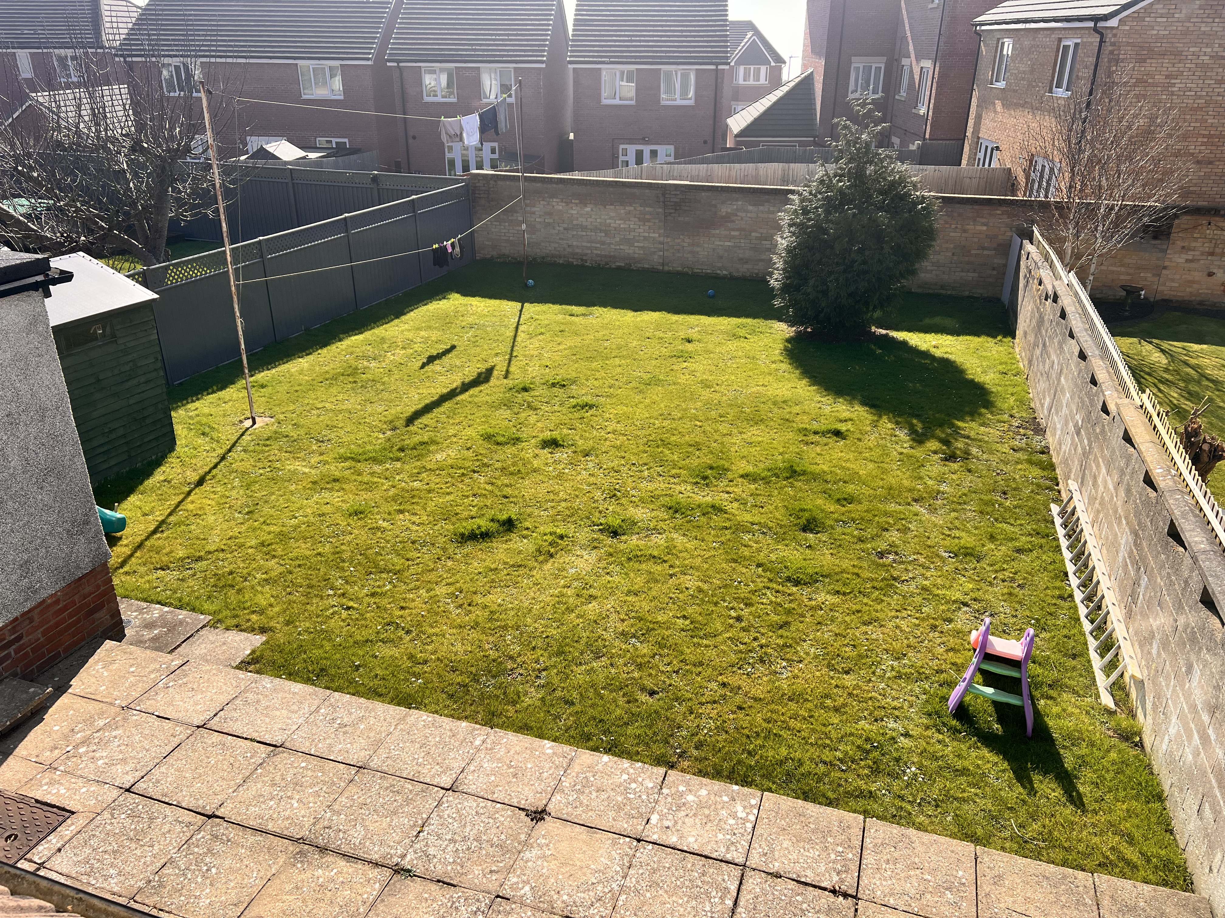 Initially with patio accessed via the annexe living room or kitchen dining room. Leads to a large level lawn and boarded by a mix of composite fencing, brick and block wall. Enjoys a Southerly aspect and garden shed is to remain. Tap.