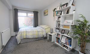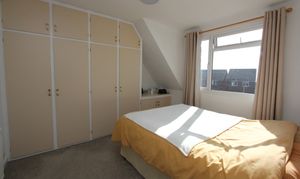 Carpeted double bedroom with uPVC window to rear. Radiator. Range of fitted bedroom furniture, again, quadruple in width.