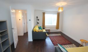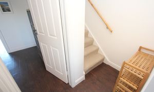 Karndean flooring. UPVC window to front. Radiator. Under stairs cupboard. Door to dining room.