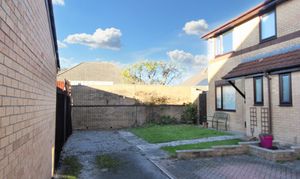 Front garden -area laid to lawn with gate to side. Rear Garden - Laid to lawn, enclosed, paved area providing space for seating etc. Water tap. Side area - raised hard standing for shed.