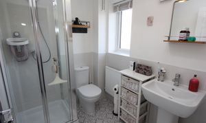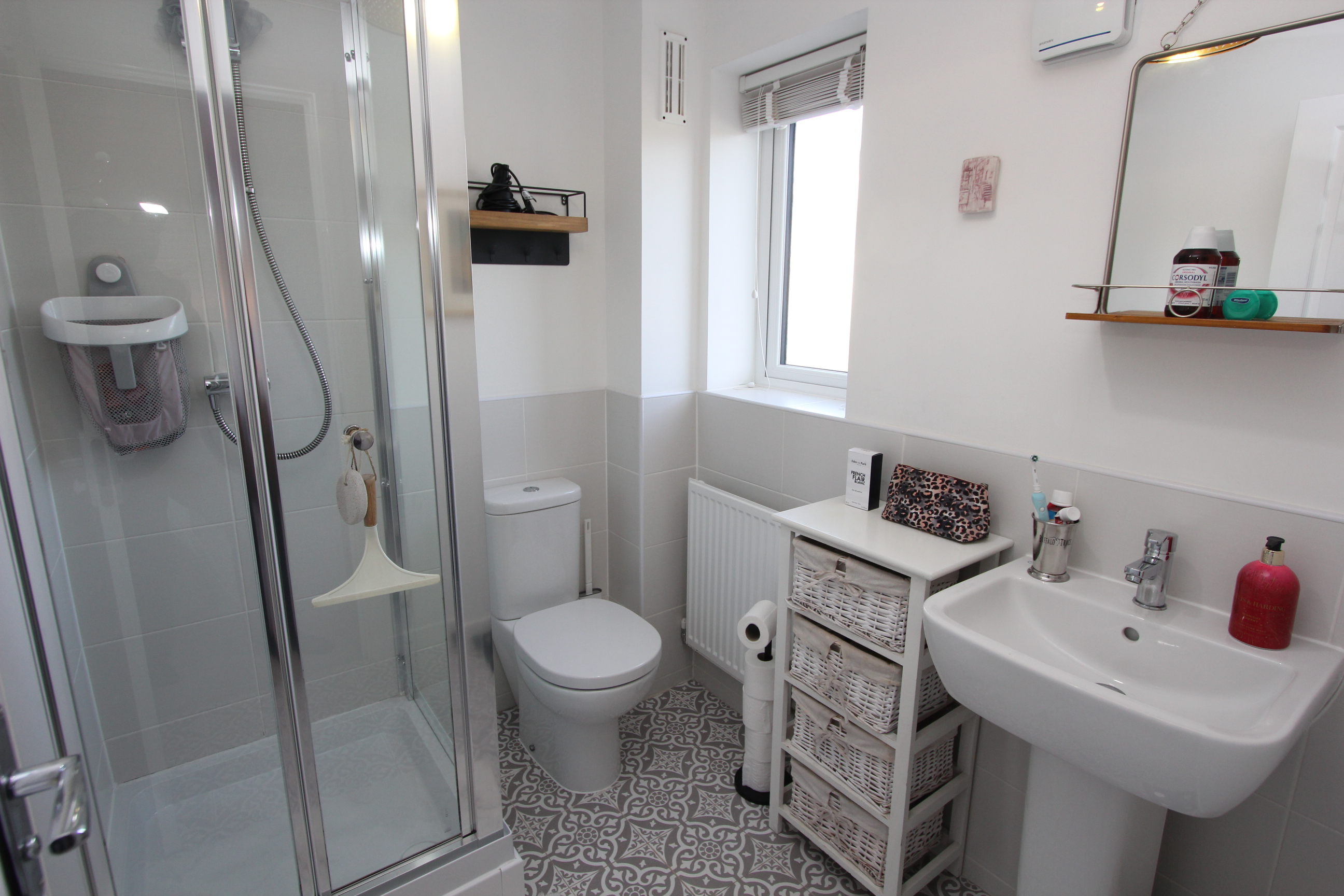 UPVC opaque window to front. Radiator. Low level WC. Shower enclosure and mixer. Ceramic floor tiles. Pedestal wash hand basin with mixer tap.