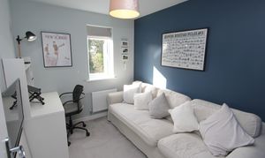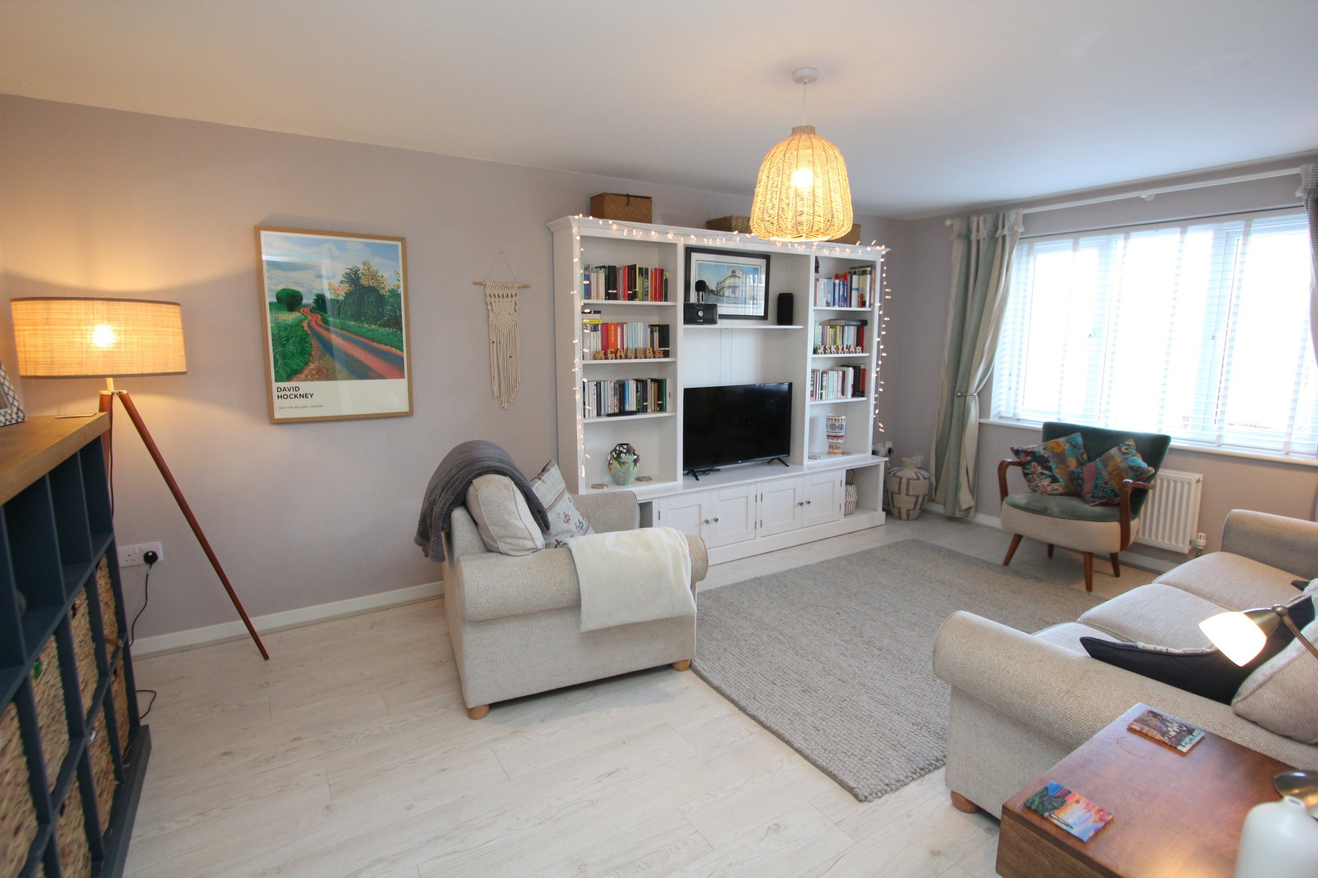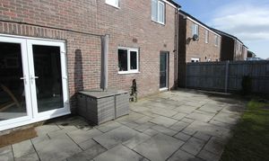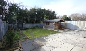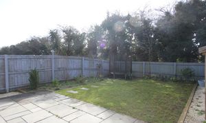 Rear Garden: Dimensions: 35' wide x 37' deep (10.66m x 11.27m). An enclosed garden south facing, low maintenance with decking, chippings and Indian sandstone paving, providing space for table and chairs and barbeques etc. Gate to side providing access from front. Outdoor lighting.