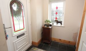 uPVC opaque glazed front entrance door. uPVC windows to front. Floor tiles. Door to cloakroom/WC. Opening to entrance hallway.