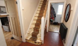 Stairs to first floor. Doors to bedroom, sitting room and dining room. Period style radiator. Quarry floor tiles.