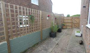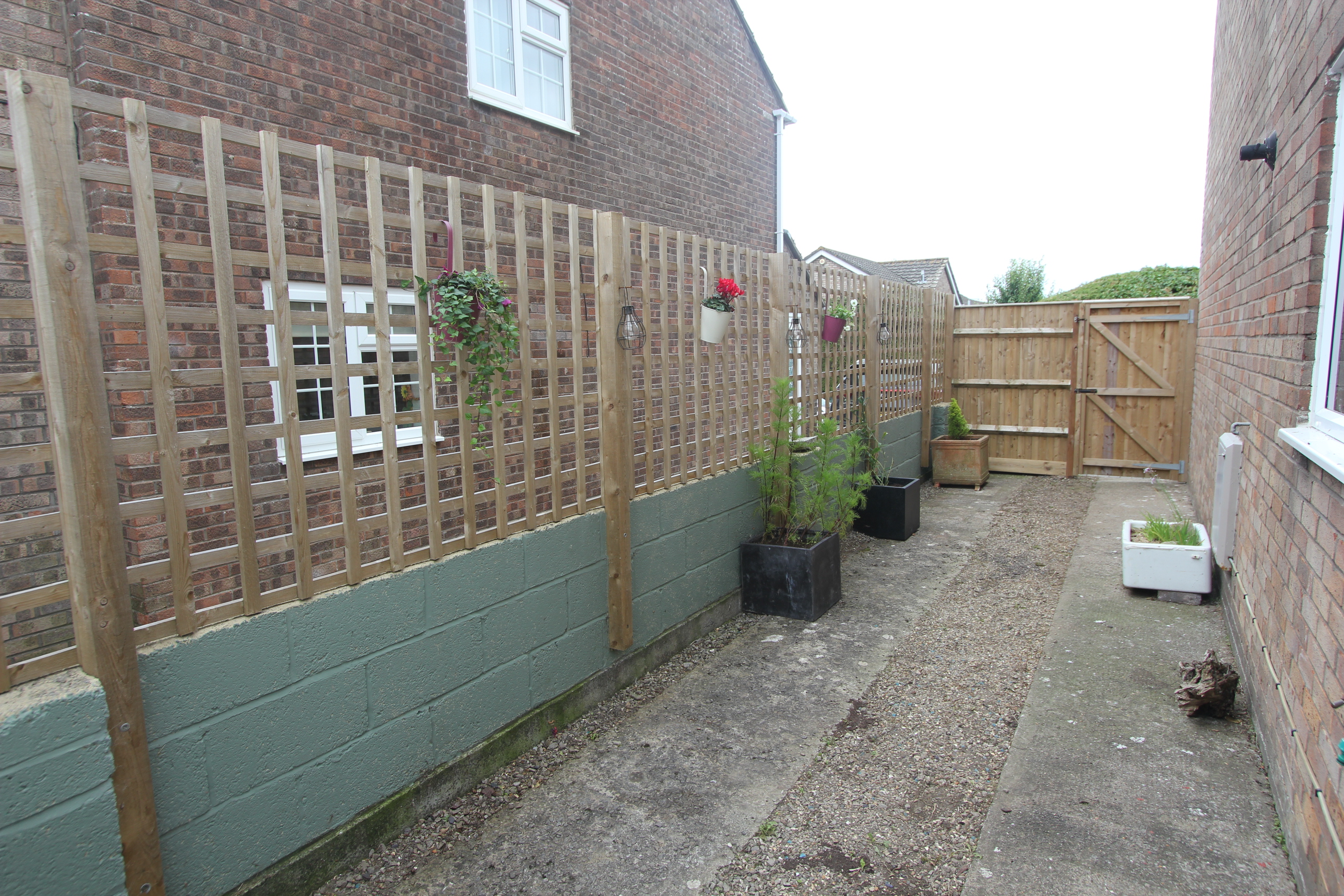 Double driveway to front - block paviour. Driveway to side - Dimensions: 25' long x 7' 8' 'wide (7.61m long x 2.34m wide). An enclosed area, providing additional parking space or potential for extension. Currently used as additional courtyard garden space.