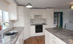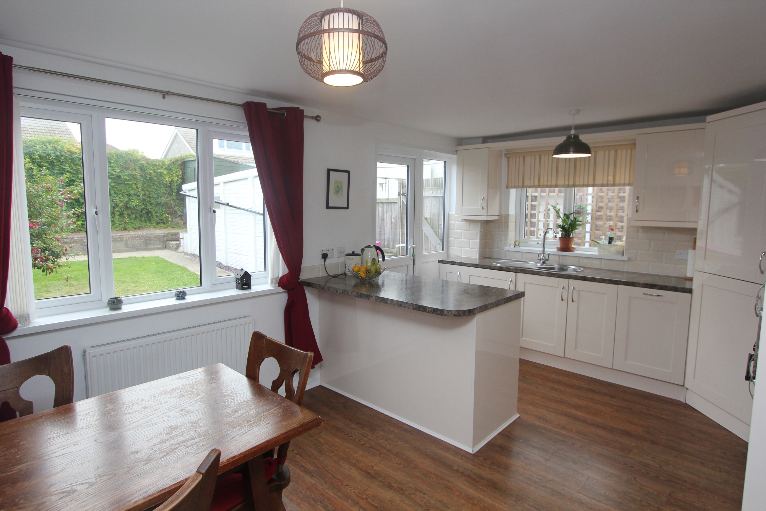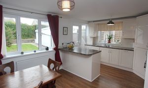 Dimensions: 16' 8'' x 10' 11'' (5.08m x 3.32m). UPVC windows to rear. UPVC glazed door to rear. UPVC window to side. Fully fitted kitchen comprising eye level units and base units with work surfaces over. Inset stainless steel sink with mixer tap. Space for washing machine. Integrated dishwasher. Storage cupboard containing the wall mounted Worcester combination boiler 2014. Partially tiled walls. Electric hob with Bosch oven. Space for table and chairs. Radiator. High quality vinyl floor covering (Cortec - luxury vinyl tile which is fully waterproof).