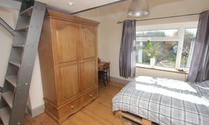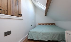 UPVC window to front. Views of countryside. Radiator. Stripped floor boards. Ladder to office area (5' x 12'); Power and lighting. Veluxes to rear. Storage. Wood effect flooring.