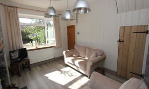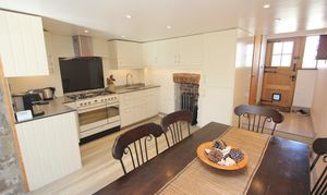 Front entrance opaque glazed stable door. Stairs to first floor. Solid oak door to sitting room.