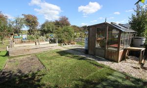 Front garden - enclosed and low maintenance. Rear Garden is a short walk away to the left as you come out of the back door of the property, its the second garden on the left. Raised beds. Artificial grass. Paved seating area for barbeques etc. Greenhouse/potting shed.