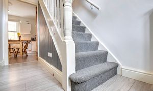 Upon entering the property, you step onto the light grey laminate flooring in this welcoming entrance hallway. The same flooring has been installed throughout the entire ground floor, giving the property a cohesive feel. The generously sized living room, located at the front of the house, is highlighted by a large bay window, high ceilings, tasteful coving, and neutral décor. As the property is set back from the road, this living room feels private and makes the perfect space to unwind in the evening.