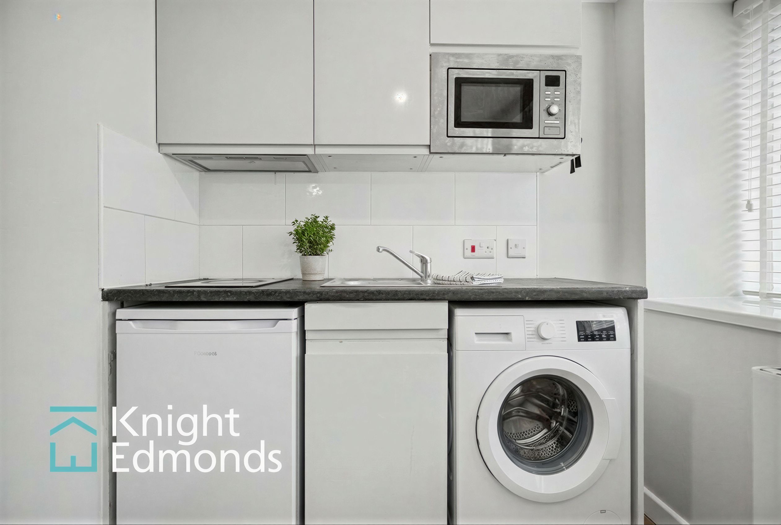 The studio features a sleek kitchenette equipped with essential appliances, including a combination microwave, hob, washing machine and fridge. Compact yet functional, it offers everything you need to prepare meals and entertain guests. Complete with a shower room , ensures convenience and comfort, making this property well-suited for modern urban living.