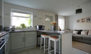 The ground floor features a bright, open-plan living/dining area leading into a well-appointed kitchen. Upstairs, you'll find a generously sized double bedroom with ample space, a modern bathroom, and a useful hall area at the top of the stairs. The thoughtful layout makes excellent use of the available space across both floors.