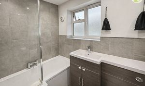 Upstairs, you will find two generously sized double bedrooms, both tastefully decorated and flooded with natural light. The family bathroom features a modern suite with a bath-tub, perfect for those relaxing soaks after a long day.