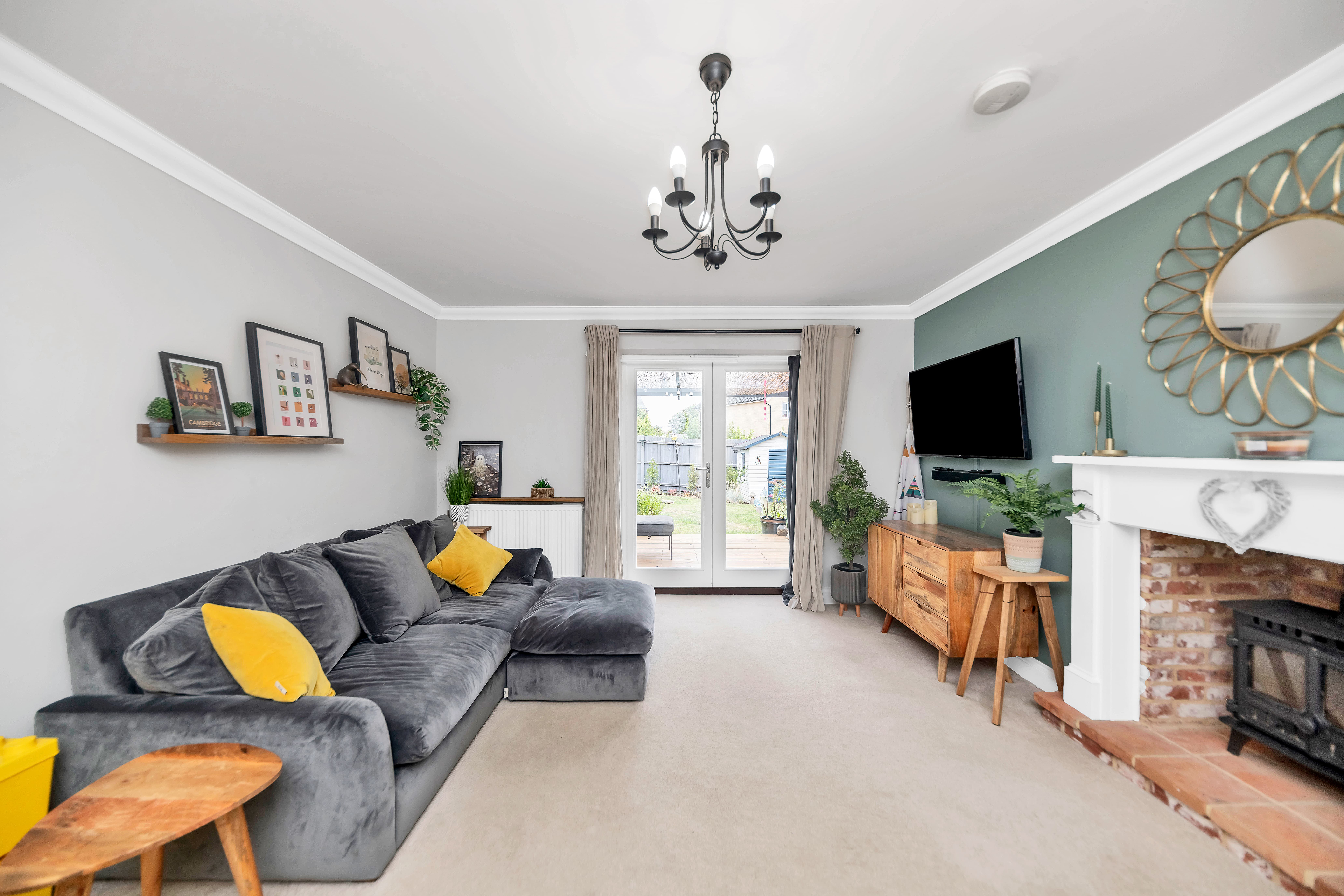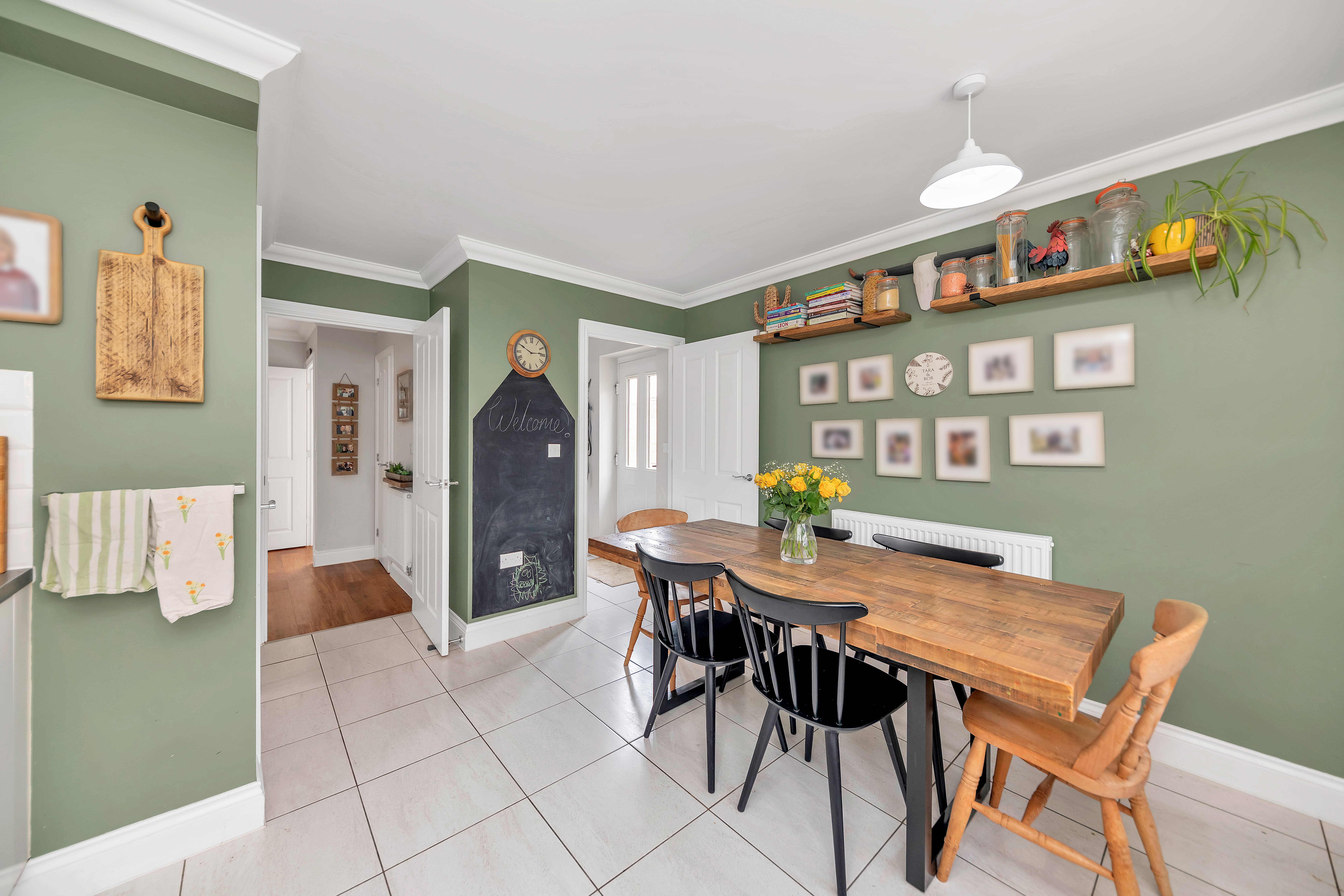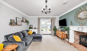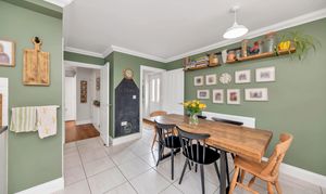The lounge is an excellent size, enjoying double French doors to a garden aspect, a fireplace with a wood-burning stove, attractive decor, plush carpets, pendant lighting, and ample space for a variety of lounge and storage furniture. The dining room is equally a good size and offers versatile usage, with a window to a front aspect, wood flooring and pendant lighting.
