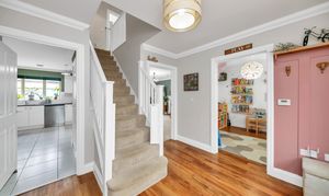 Upstairs to the first floor, this lovely home continues to offer impressive accommodation, with 4 well-proportioned bedrooms, excellent storage, and a family bathroom comprising a bath with an overhead shower, a WC and a hand wash basin. The primary bedroom is particularly generous and enjoys its own en-suite, with a shower, WC and sink.