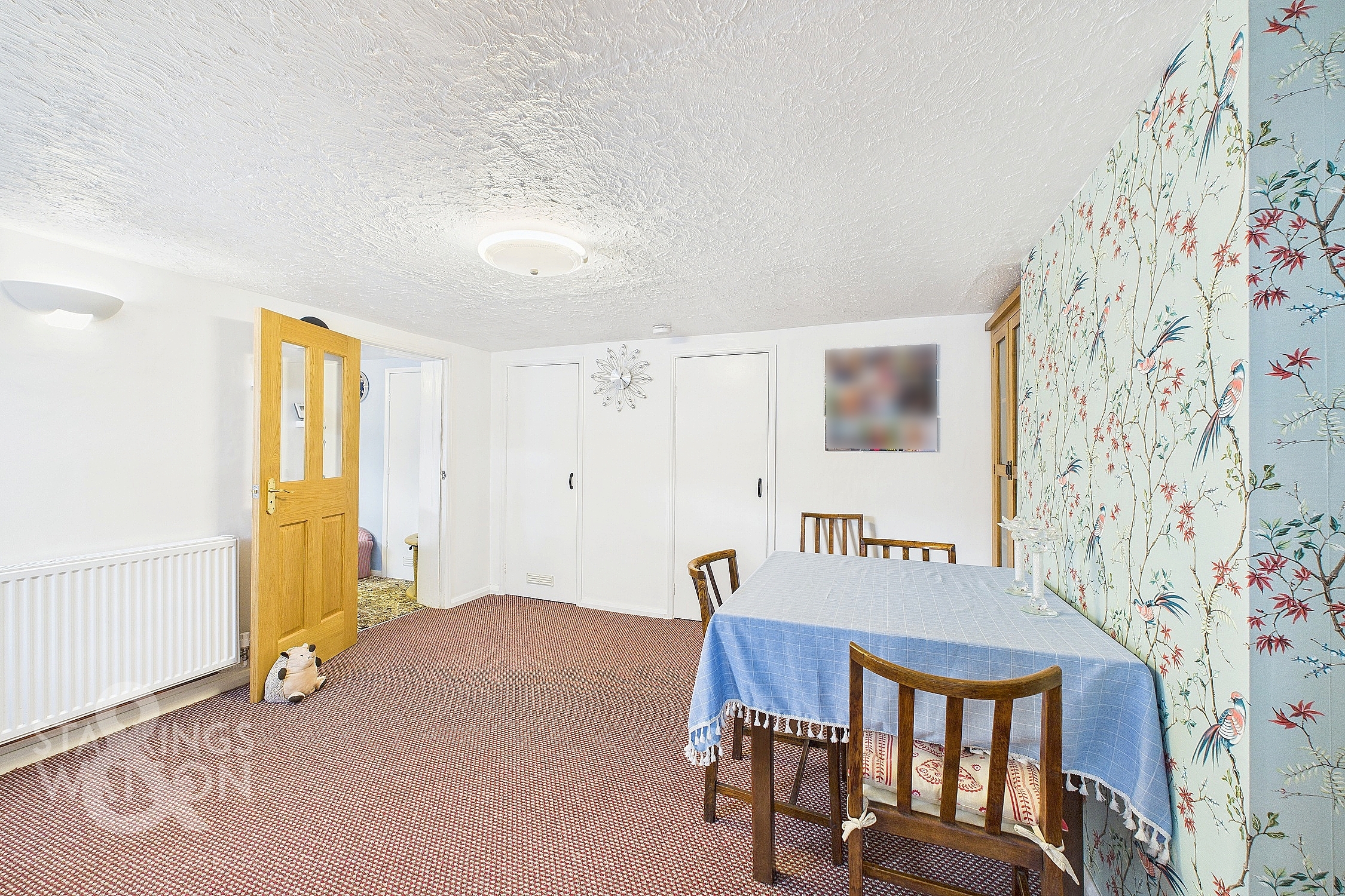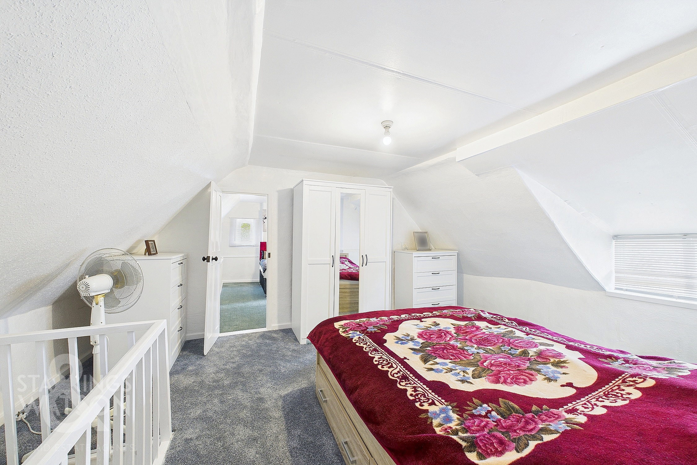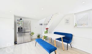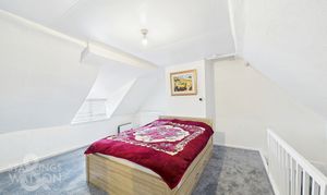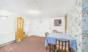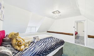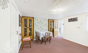 Returning to the entrance hall and proceeding to the thatched portion of the house, you will find the dining room, featuring fitted carpets, ample storage cupboards and a staircase to the first floor. The adjacent sitting room follows a similar design, with fitted carpets, large windows overlooking the front and an additional staircase to the first floor. The final reception room provides access to the utility room and a third staircase to the final first-floor bedroom. The utility room features light wood flooring, white walls and ceilings, space for white goods, storage, a stainless steel sink with mixer tap and exterior access. The remaining first-floor bedrooms, each with their own staircase access, provide plenty of space for furniture and double beds, completing the accommodation.
