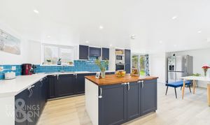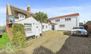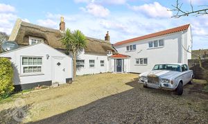 Guide Price £425,000-£450,000. This stunning DETACHED part THATCHED home is located on the fringes of the popular seaside village of Hemsby offering over 2150 Sq. ft of accommodation (stms), providing a unique blend of modern comforts and period features - with half of the property demolished and rebuilt from the ground up. The thatched section of the house has been completely re-thatched with reed in 2021. The accommodation includes FOUR DOUBLE BEDROOMS all with BUILT-IN STORAGE with an 18’ MAIN BEDROOM in addition to a WALK-IN WARDROBE and three piece EN SUITE bathroom. A 25’ open plan KITCHEN/DINING ROOM creates the hub of the home, with BI-FOLD OPENING doors to the rear and adjacent FAMILY BATHROOM. A spacious DINING ROOM and SITTING ROOM, as well as a further FAMILY ROOM are generously proportioned, and sit alongside a functional UTILTY ROOM.