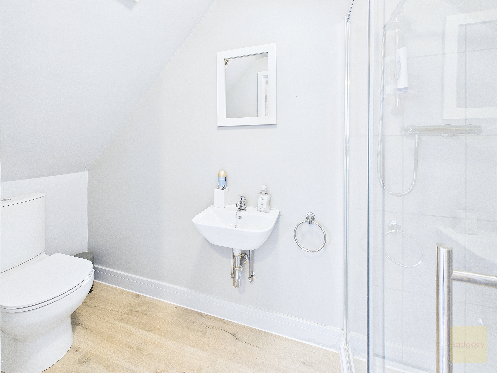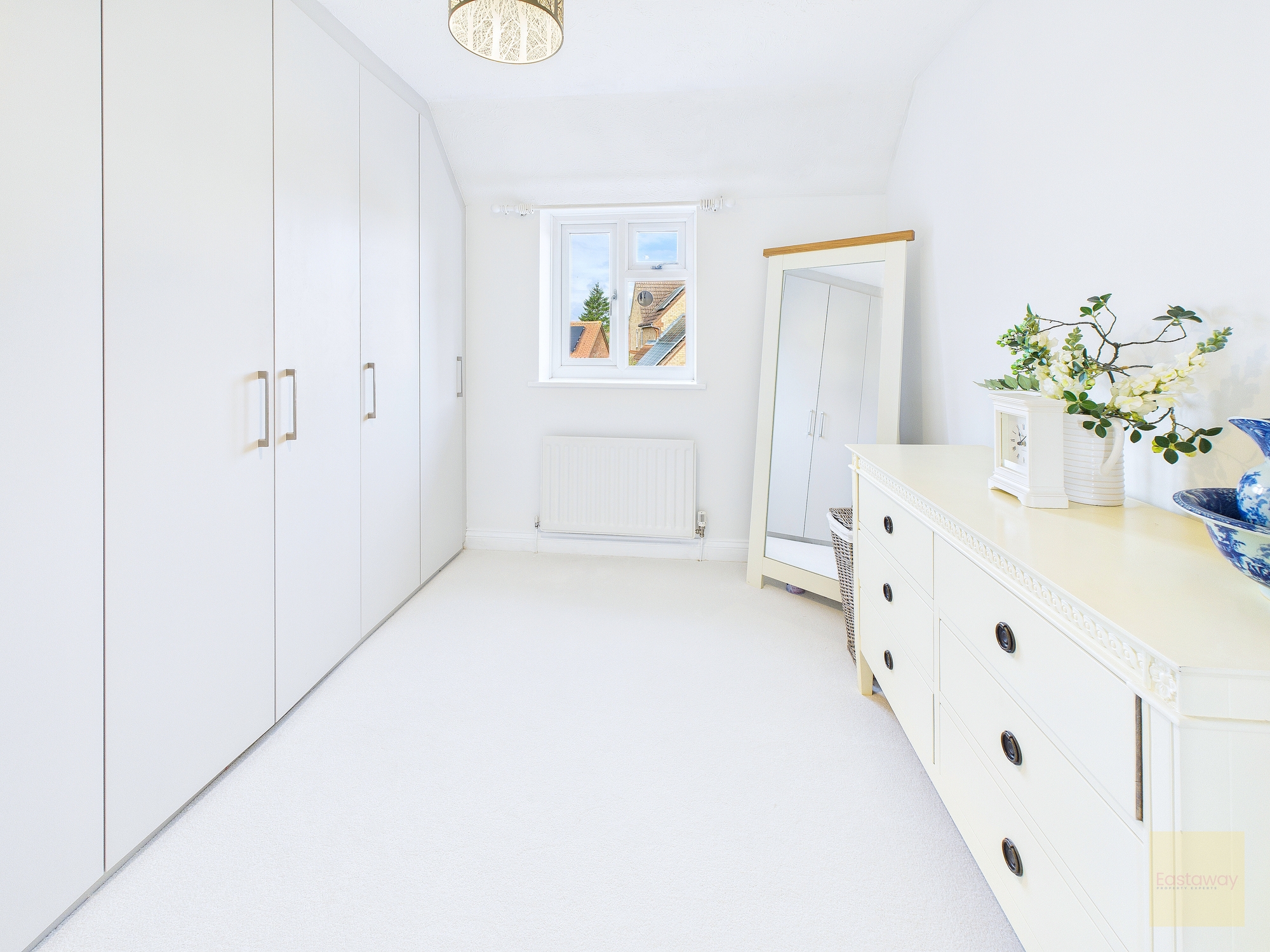 Upstairs, there are four bedrooms, including the principal with its own en-suite. One of the bedrooms has been set up as a dressing room with a full wall of wardrobes, showing how flexible the layout can be. The family bathroom is fresh and bright with a shower-over-bath. With new carpets and tasteful décor, the house is ready for the next owners to move straight in.