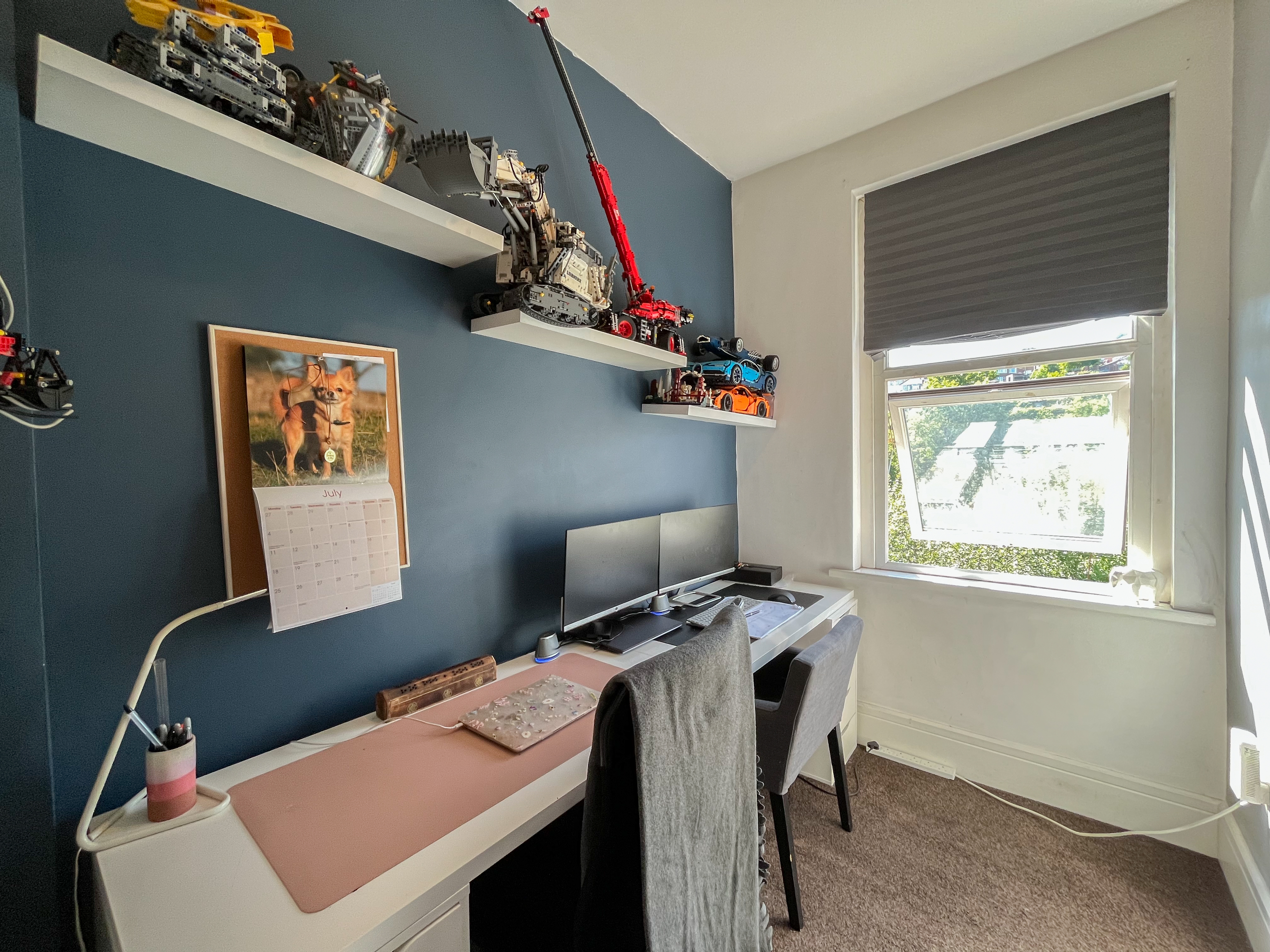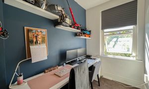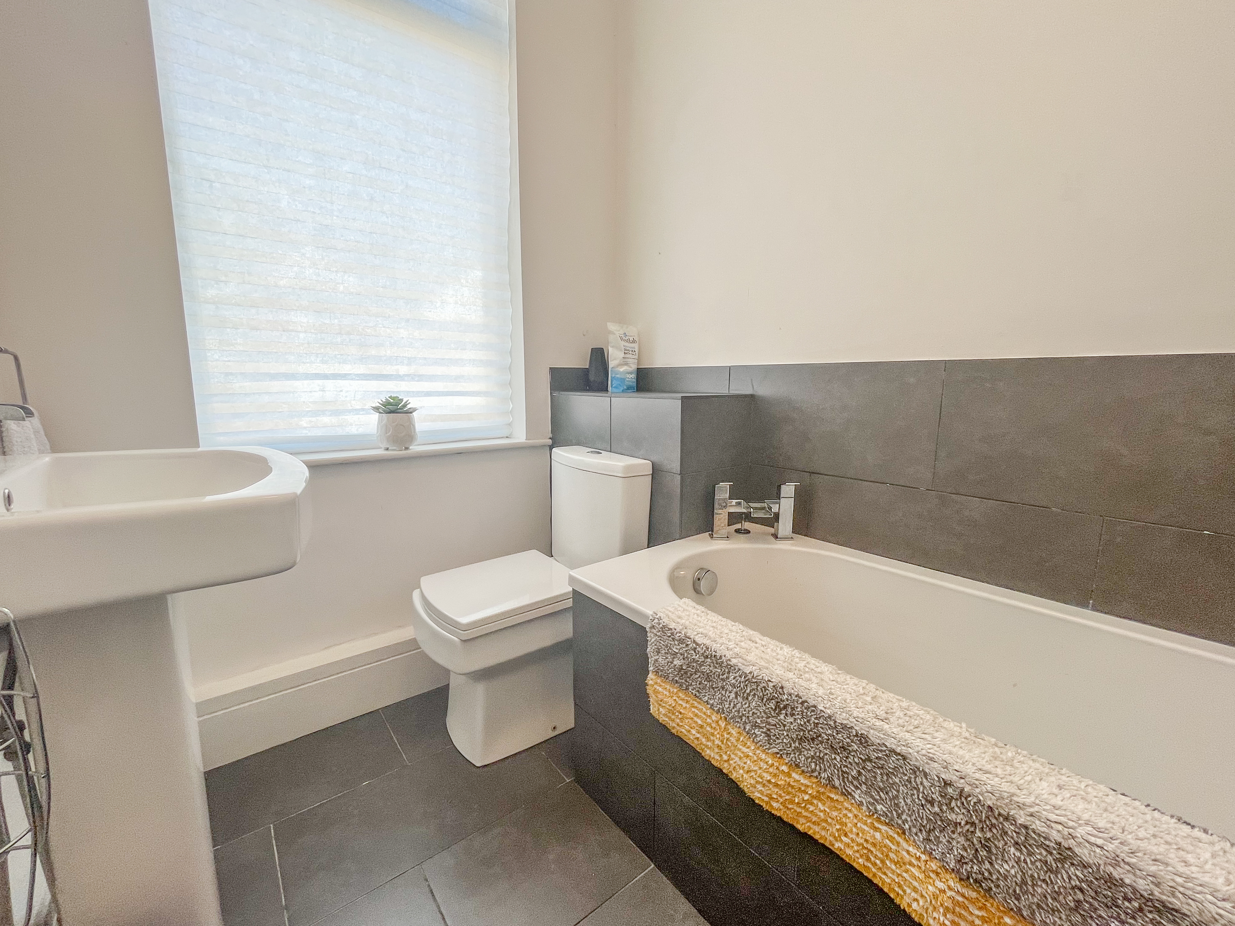 To the first floor there are three bedrooms, two of which are double and the third a useful single that is currently used as a study. The two double rooms benefit from feature fireplaces with the second enjoying a fitted wardrobe. The family bathroom can be found from the landing with a bath suite and overhead shower.