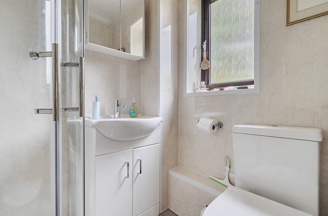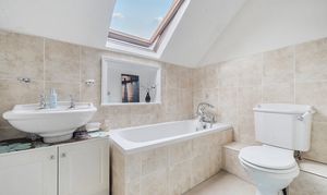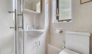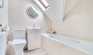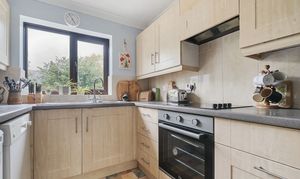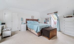 Upstairs are two good sized double bedrooms. The main bedroom includes built-in wardrobes and an en suite bathroom, and the second bedroom offers plenty of storage with eaves cupboards and an additional double wardrobe on the landing. A modern family bathroom serves this floor.