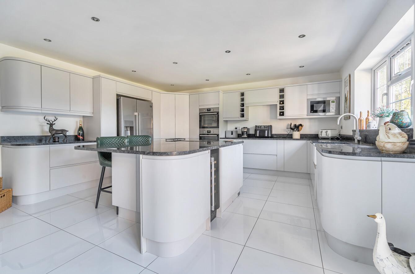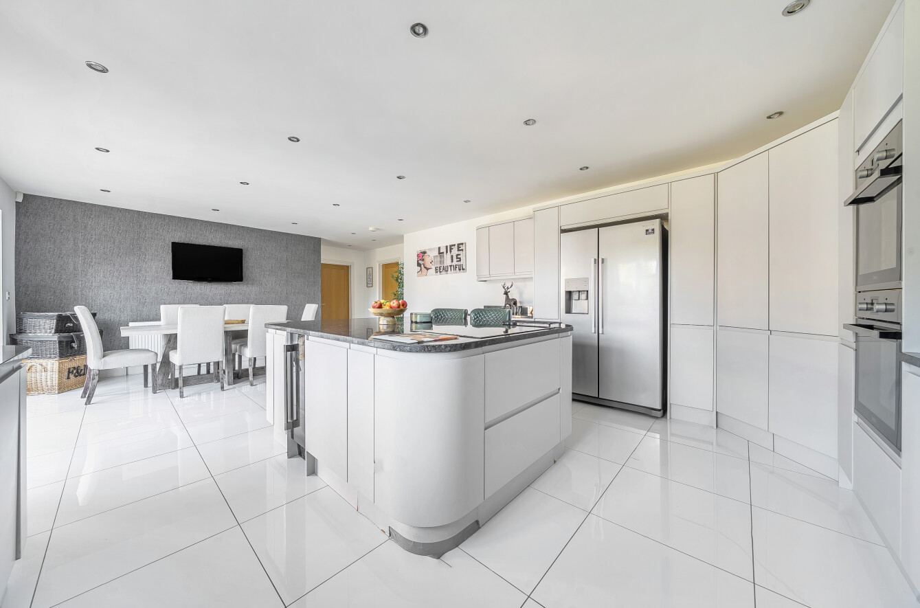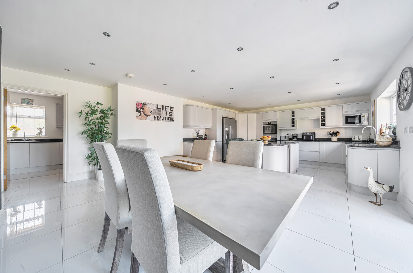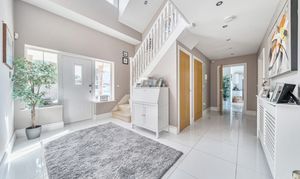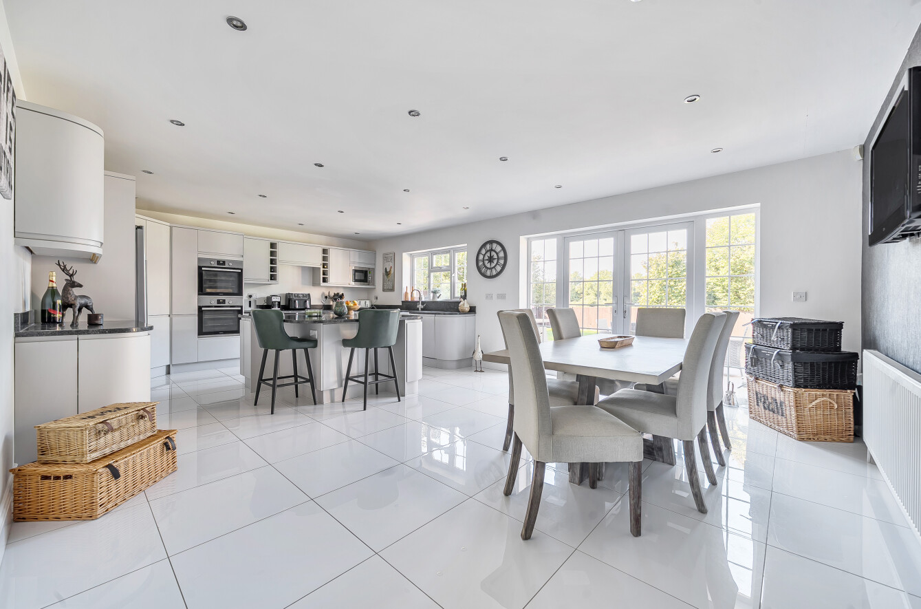 Constructed in 2011 and meticulously updated by the current owners since the original purchase. Upon entry, a grand entrance hall welcomes you with a vaulted ceiling and a staircase leading to an elegant galleried landing. The dual aspect sitting room boasts views of the westerly aspect rear garden and features French doors opening onto the southerly facing patio. The impressive kitchen/dining room serves as the heart of the home, featuring a modern design. Integrated appliances include a double oven, induction hob and dishwasher and French doors open to the rear garden. A separate utility room offers convenience with integrated washing machine and internal access to the double garage with an electric door. The ground floor comprises a double bedroom with an en-suite shower room, a further bedroom and a separate bathroom. The primary and guest bedrooms are located on the first floor, both enjoying en-suite facilities. The primary bedroom benefits from a full bathroom with a spa bath and separate shower unit, a spacious walk-in wardrobe and French doors opening onto a westerly facing balcony, providing uninterrupted rural views.