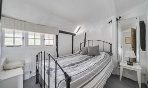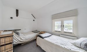 Upstairs, two delightful bedrooms await. The principal bedroom benefits from built-in storage, while the second enjoys a picturesque outlook along Prinsted Lane, a tranquil setting for rest, work, or study.