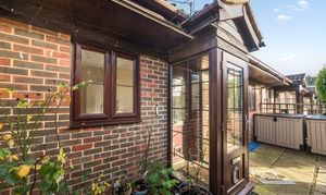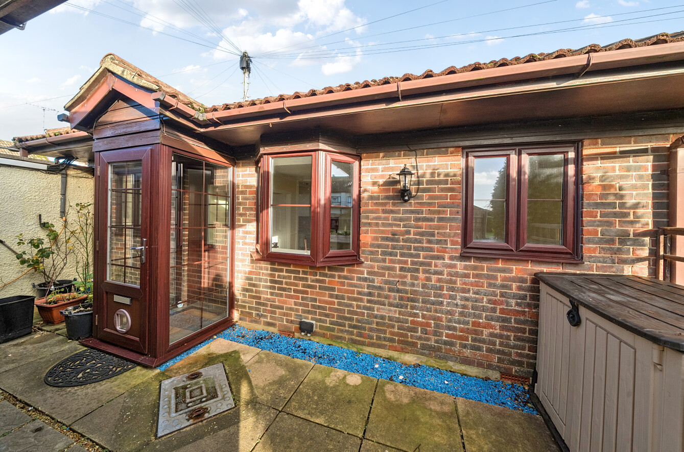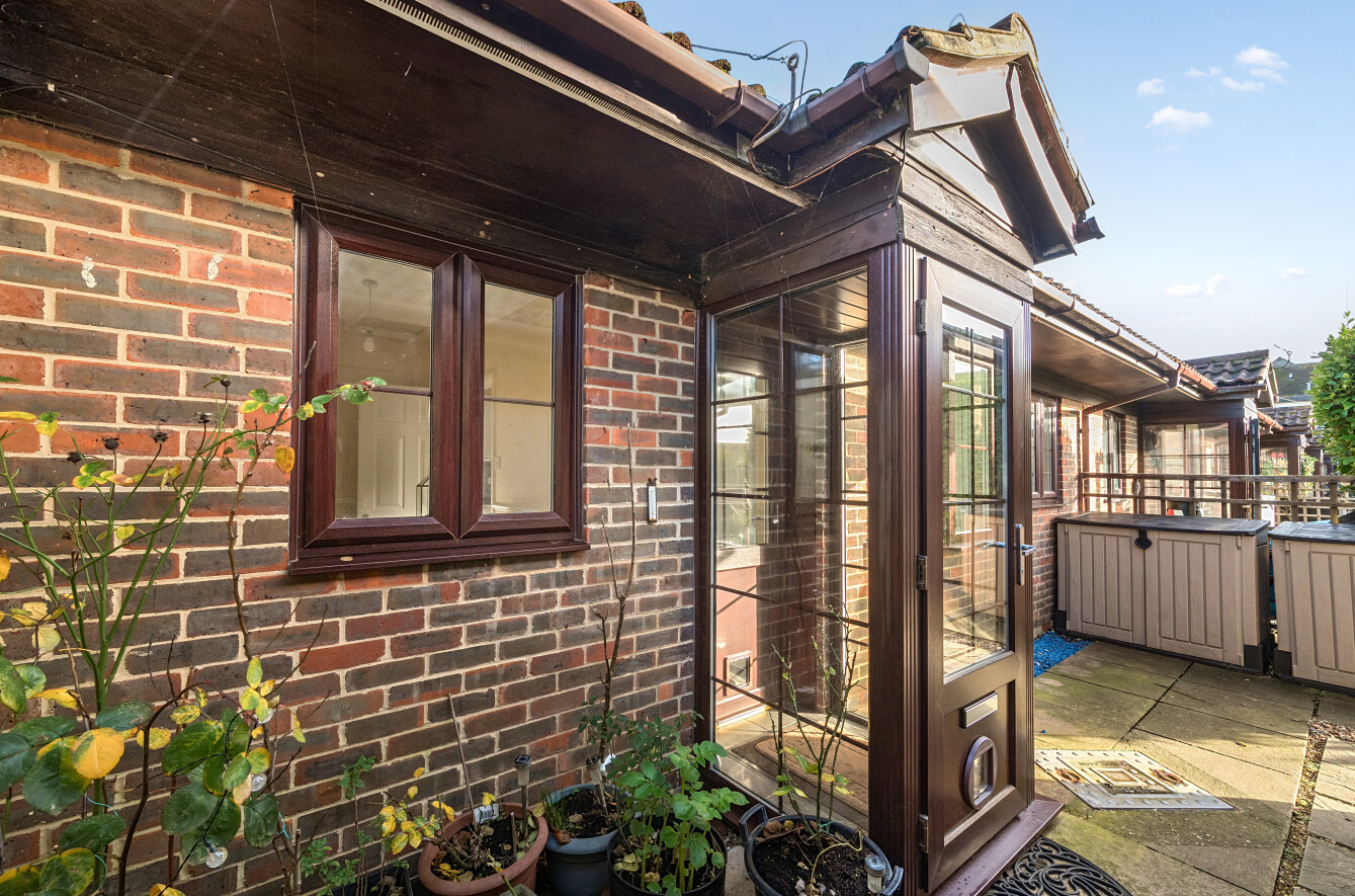 To the front of the property, there is a west and south facing communal garden which has a paved patio area that gives way to lawn and there is a path which leads to the parking area.
