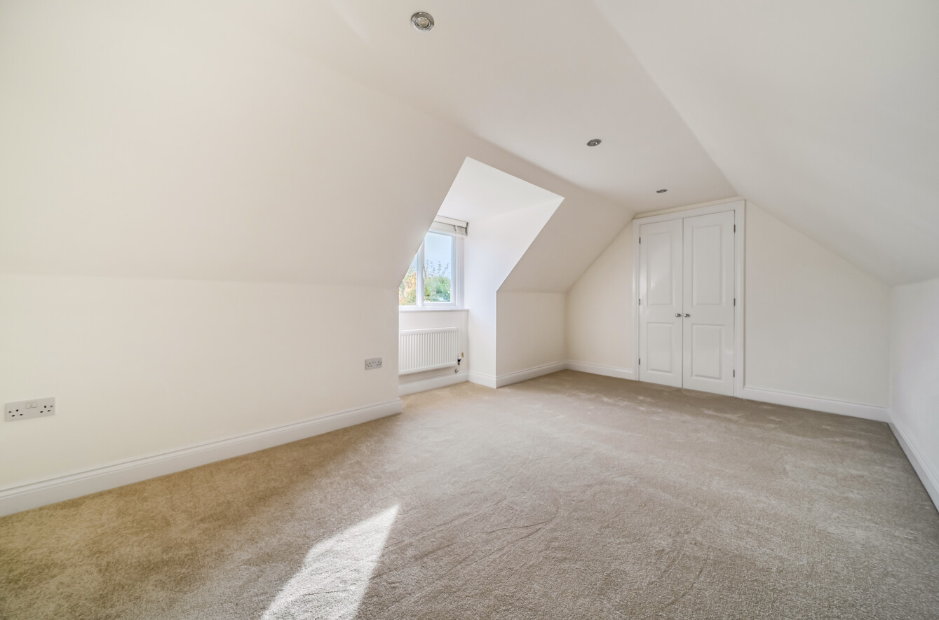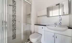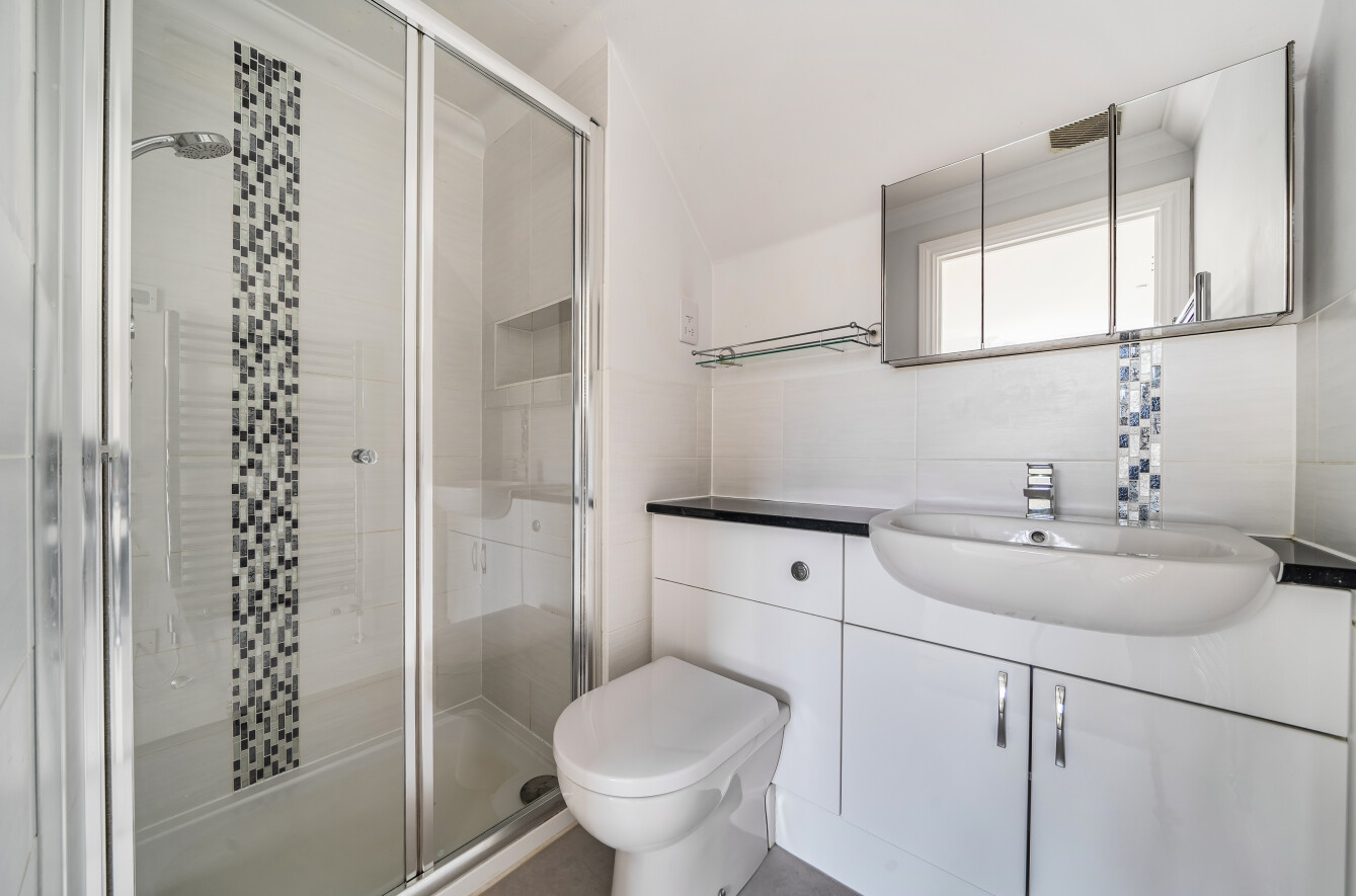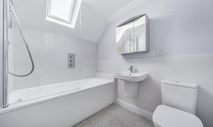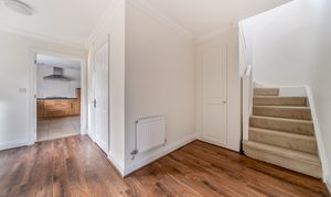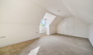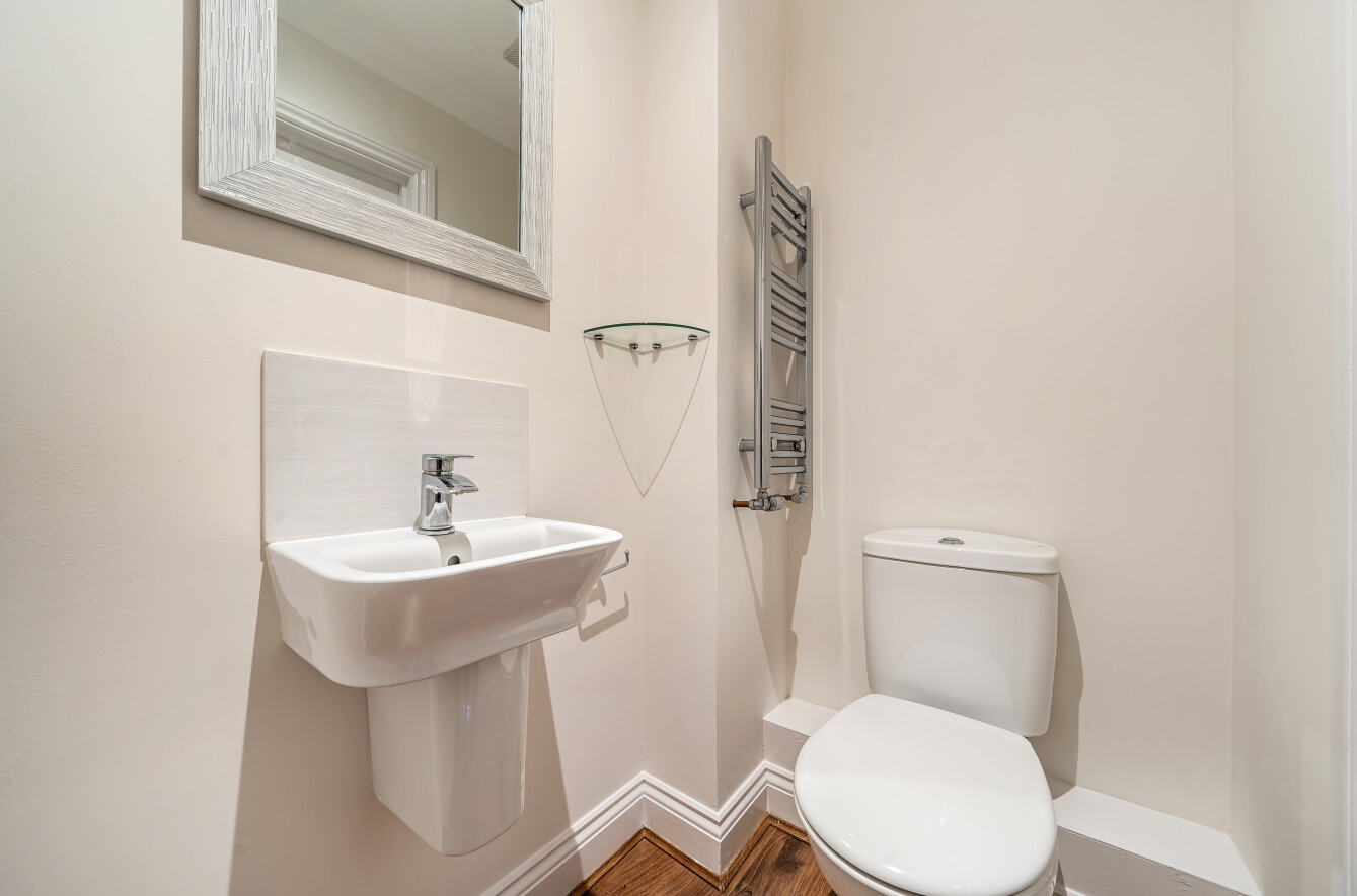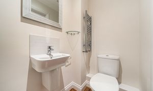Upstairs, the three well-proportioned bedrooms are light and comfortable, all decorated in soft neutral tones to create a calm and restful atmosphere. The principal bedroom is a particular feature, offering a generous layout with a deep walk-in wardrobe and a stylish en-suite shower room. The family bathroom serves the remaining bedrooms, providing a clean and contemporary space with a bath with shower over, basin and WC.