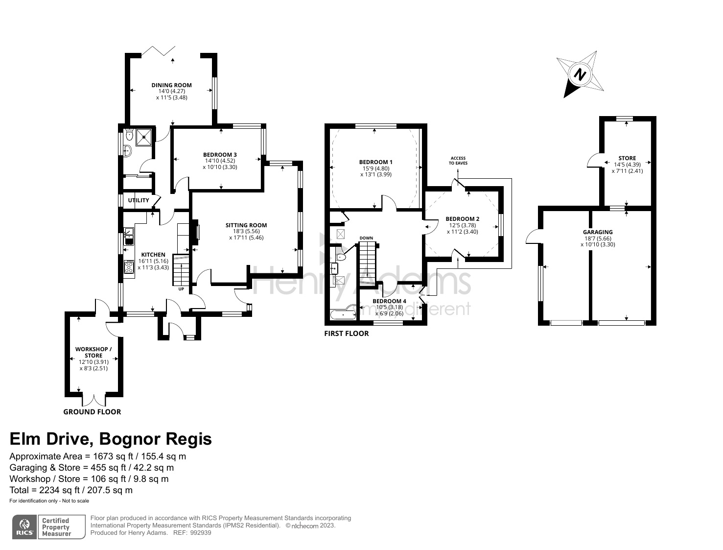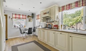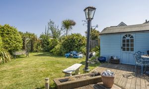 Outside, to the front of the property there is ample off-road parking with two separate entries which could be adapted to provide an in-and-out horseshoe driveway. There is also ample timber garaging and a store/workshop on the southern boundary plus a further single timber workshop to the other side. The rear garden enjoys a south-easterly aspect and has a decked patio with a good expanse of lawn lined with mature plants and shrubs. A gate at the far end leads to a further area of hidden garden and a greenhouse.