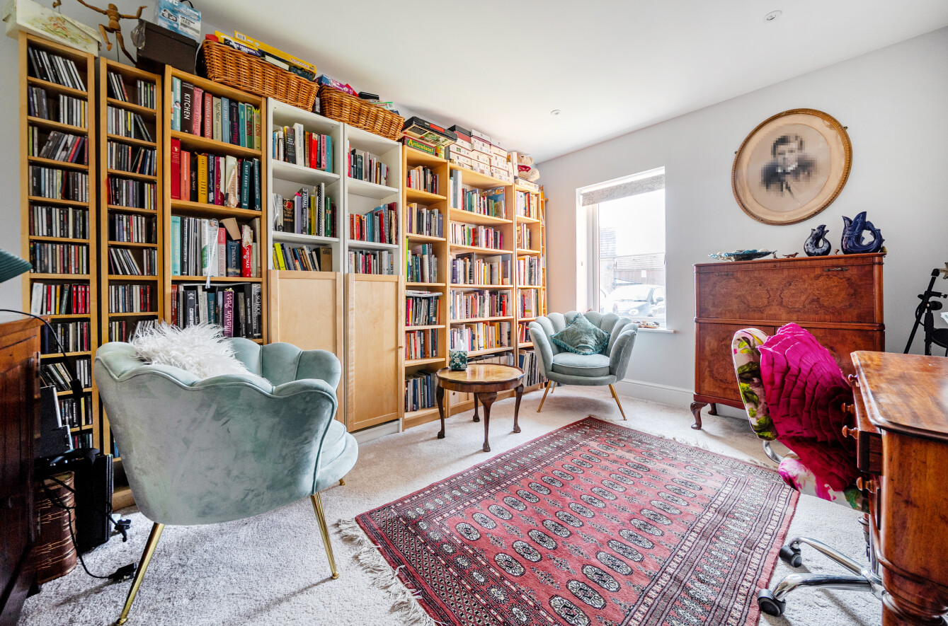 The accommodation briefly comprises to the ground floor, impressive entrance hall with ground floor WC, double width doors to a spacious sitting room, plus an additional sitting room which is currently used as a library. Double width doors to the open plan kitchen/dining/family room with French doors onto the rear garden. The kitchen is fitted with contemporary white gloss units with integral appliances and there is a separate utility room with side access.