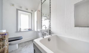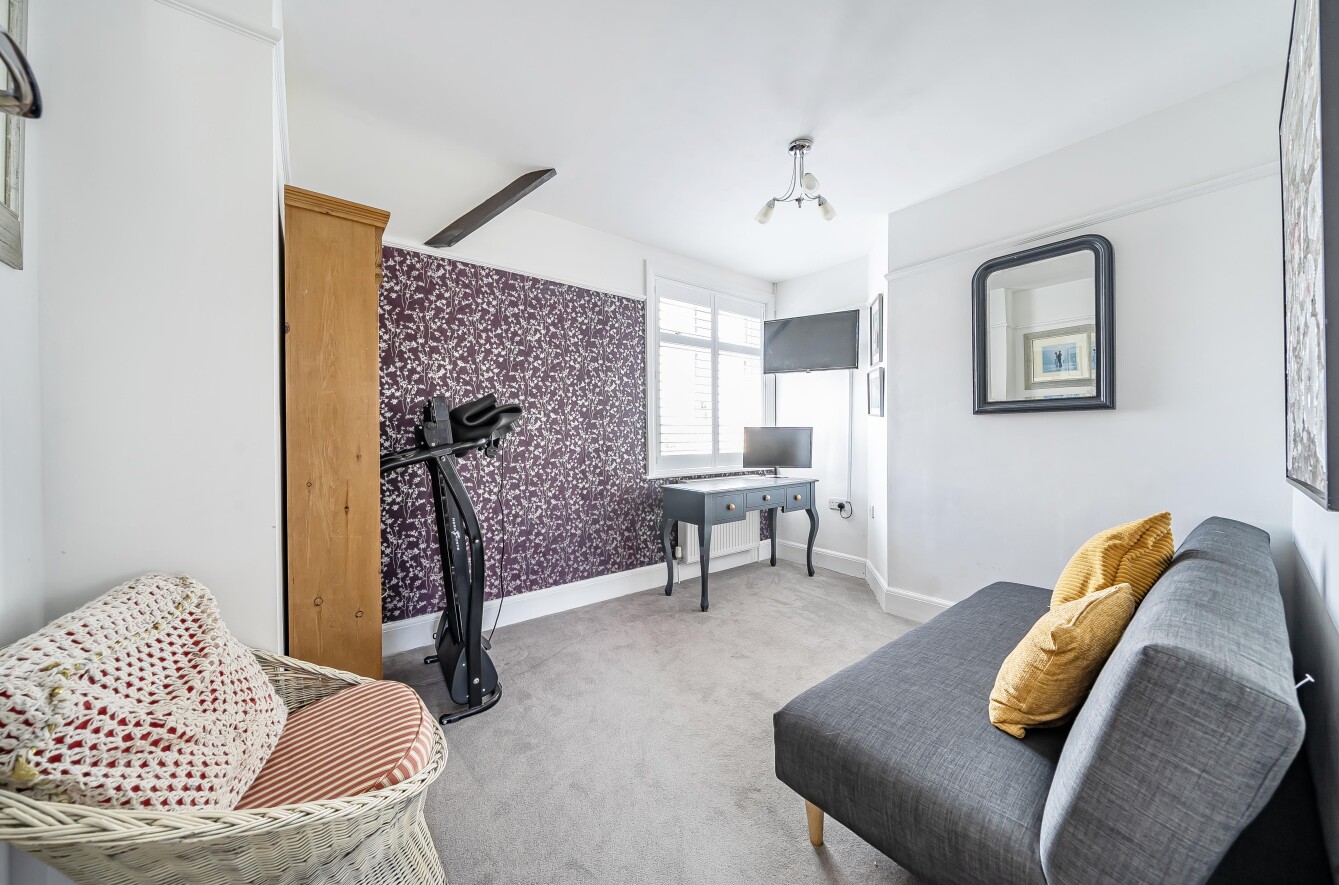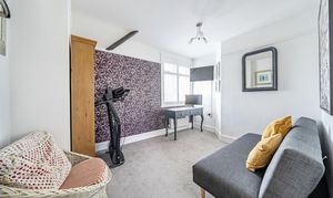 Inside, the property has been tastefully updated while retaining its period charm. The flexible layout includes three well-sized bedrooms and an additional room that can serve as a fourth bedroom, study, or snug. High ceilings, large windows, and a characterful palette enhance the sense of space and natural light throughout.