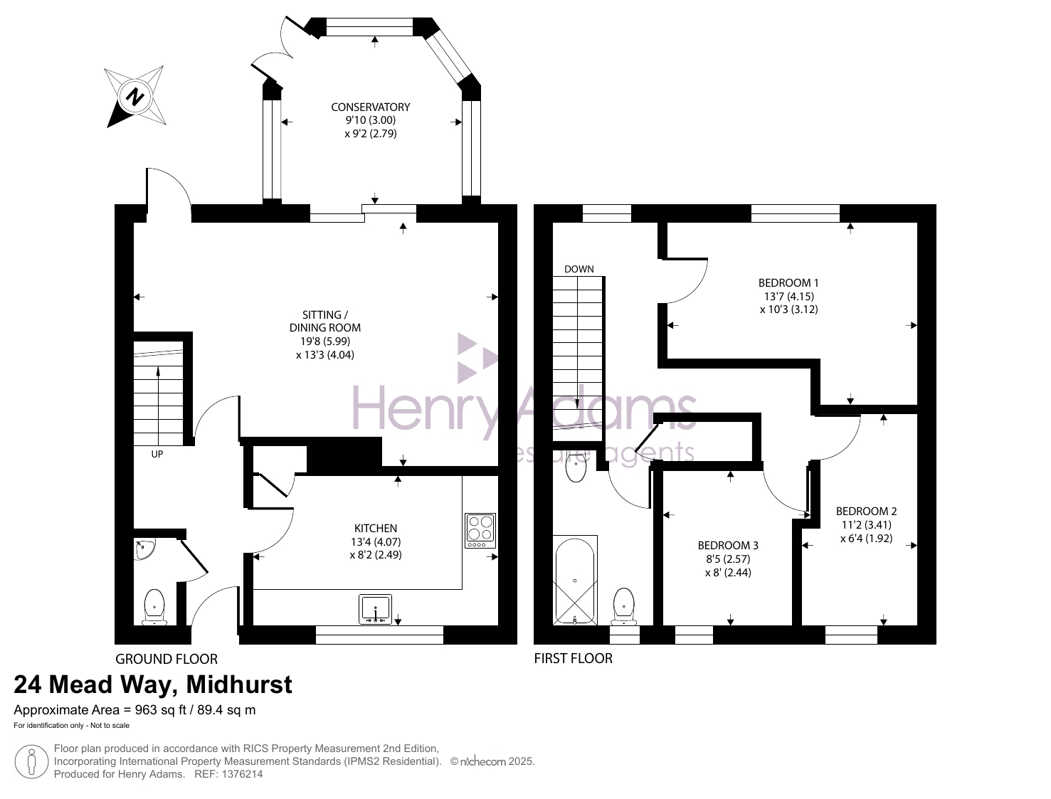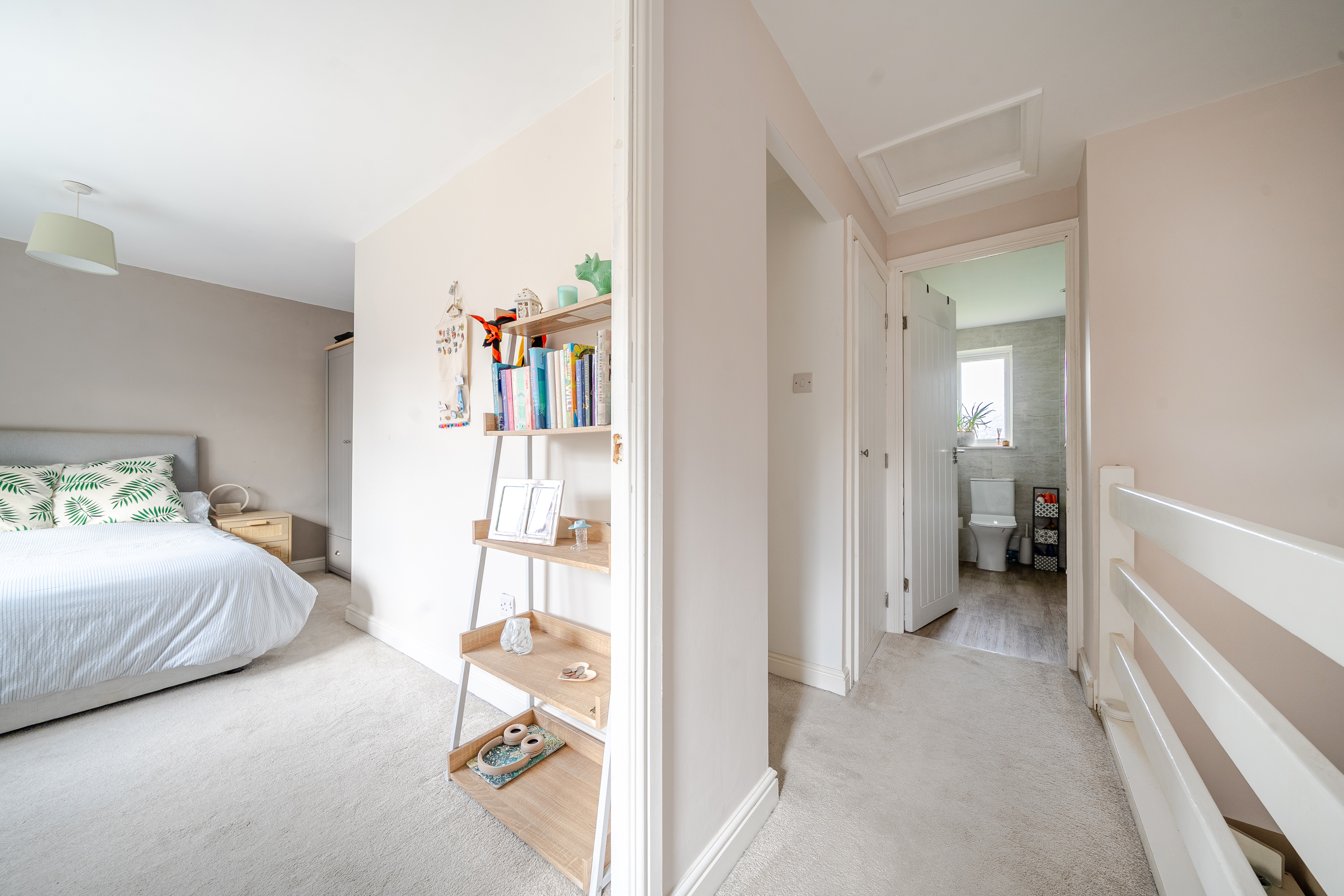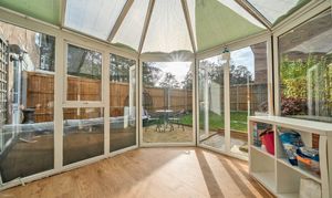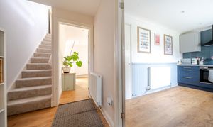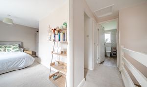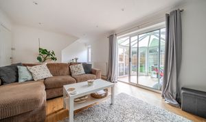 24 Mead Way is an ideal purchase for first-time buyers, having been tastefully refurbished to a high standard and offered ready to move straight into. The front of the property features a small paved patio, a covered porch over the entrance, and a pleasant outlook across a communal green. Inside, a beautifully fitted kitchen to the right boasts quartz worktops and integrated appliances including a washing machine, fridge/freezer and an oven with induction hob. A full-width sitting room runs along the rear of the house and provides direct access to a south-facing garden and a double-glazed conservatory, which floods the space with light. A convenient cloakroom completes the ground-floor accommodation.