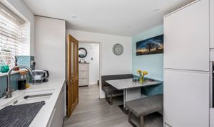 The modern kitchen is fitted with ample storage and worktop space, and integrated appliances and there is a separate dining area for family meals or gatherings.