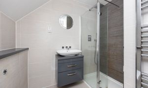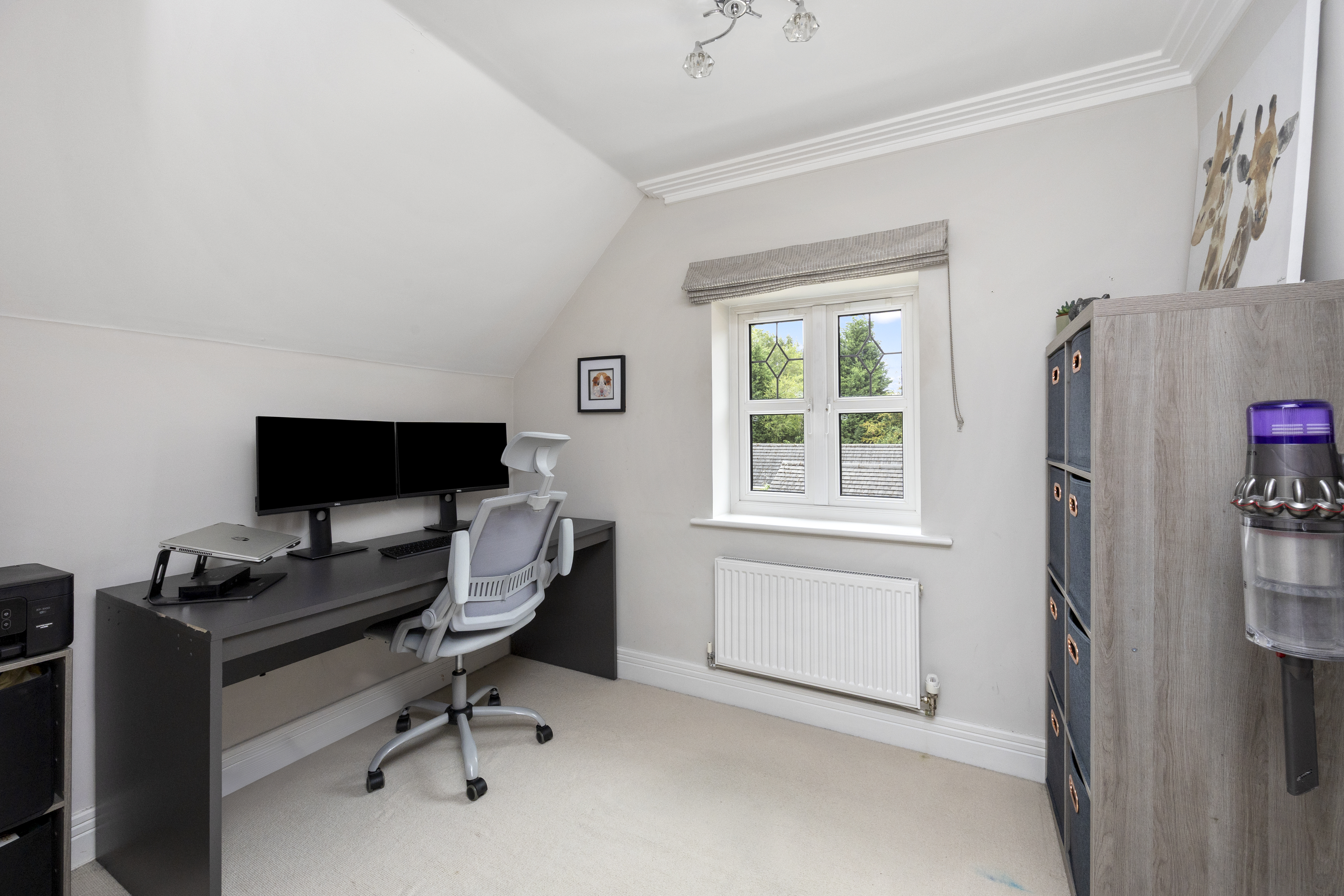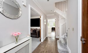 To the first floor the main bedroom has an aspect to the front of the property, fitted wardrobes and a well-equipped en-suite shower room with Villeroy & Boch bathroom ware, plus quality chrome fittings including heated towel rail. There is a further family bathroom featuring an equally high specification with a hand shower mounted on the edge of the bath. The three further bedrooms are all of decent proportions, bedroom two features a fitted wardrobe and enjoys views over the rear garden. The property also has the benefit of solar panels to improve efficiency.