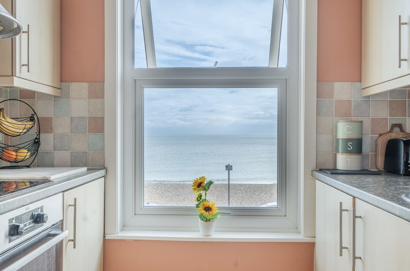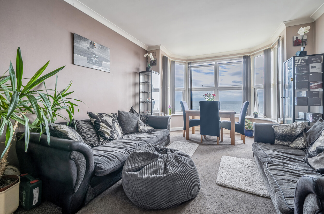 An excellent seafront flat with two double bedrooms, offering superb south facing views of the sea.