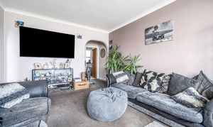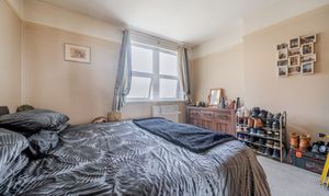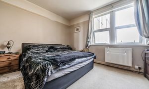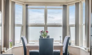 The front door to the flat opens to an entrance hall leading to all rooms except bedroom one. The hall has a large storage area containing plumbing for washing machine and an airing cupboard. The reception also enjoys great proportions with a high ceiling, coving and a huge bay window with stunning views of the sea.
