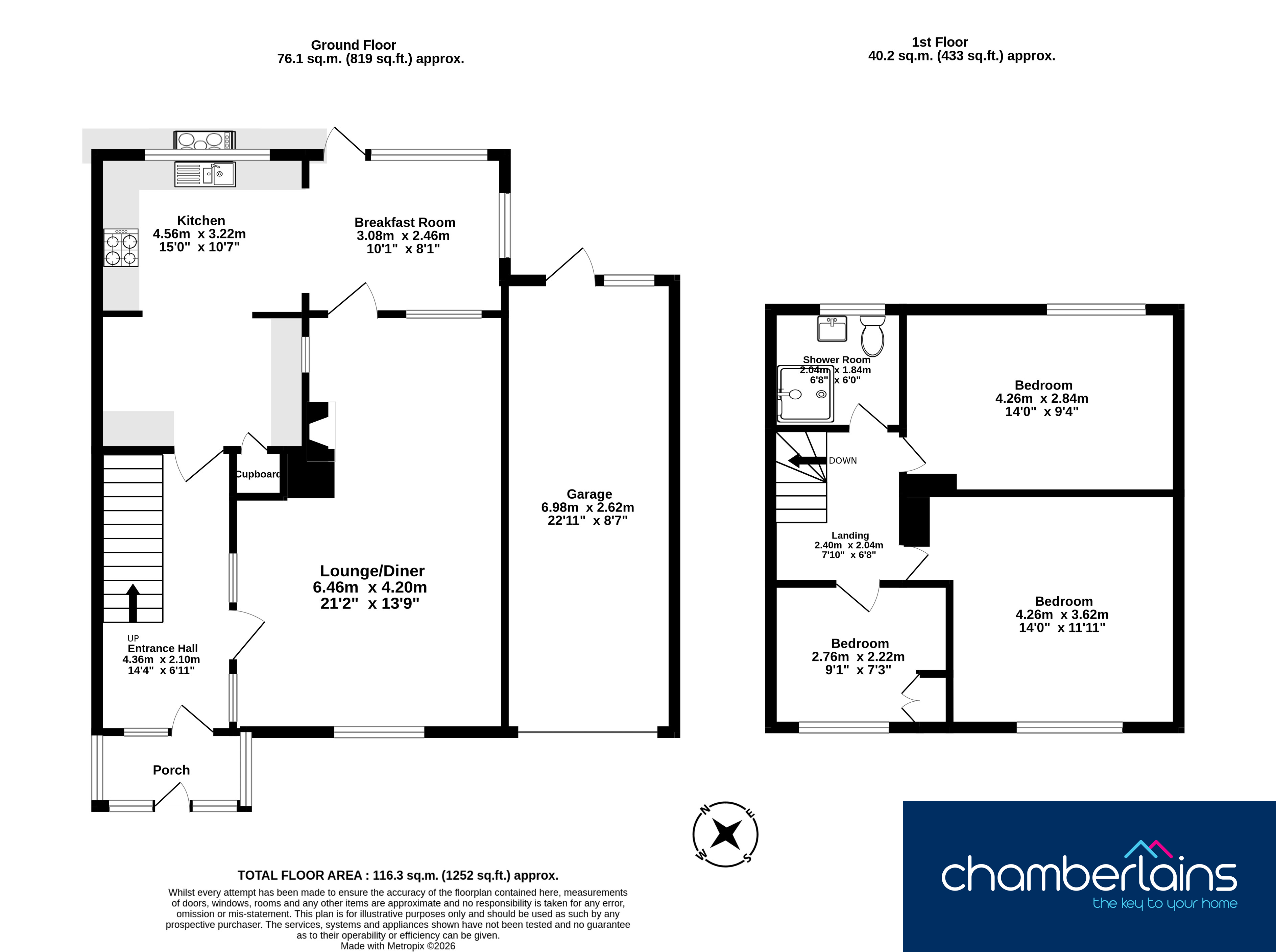 Lounge: 21’2” x 13’9” (6.46m x 4.20m)