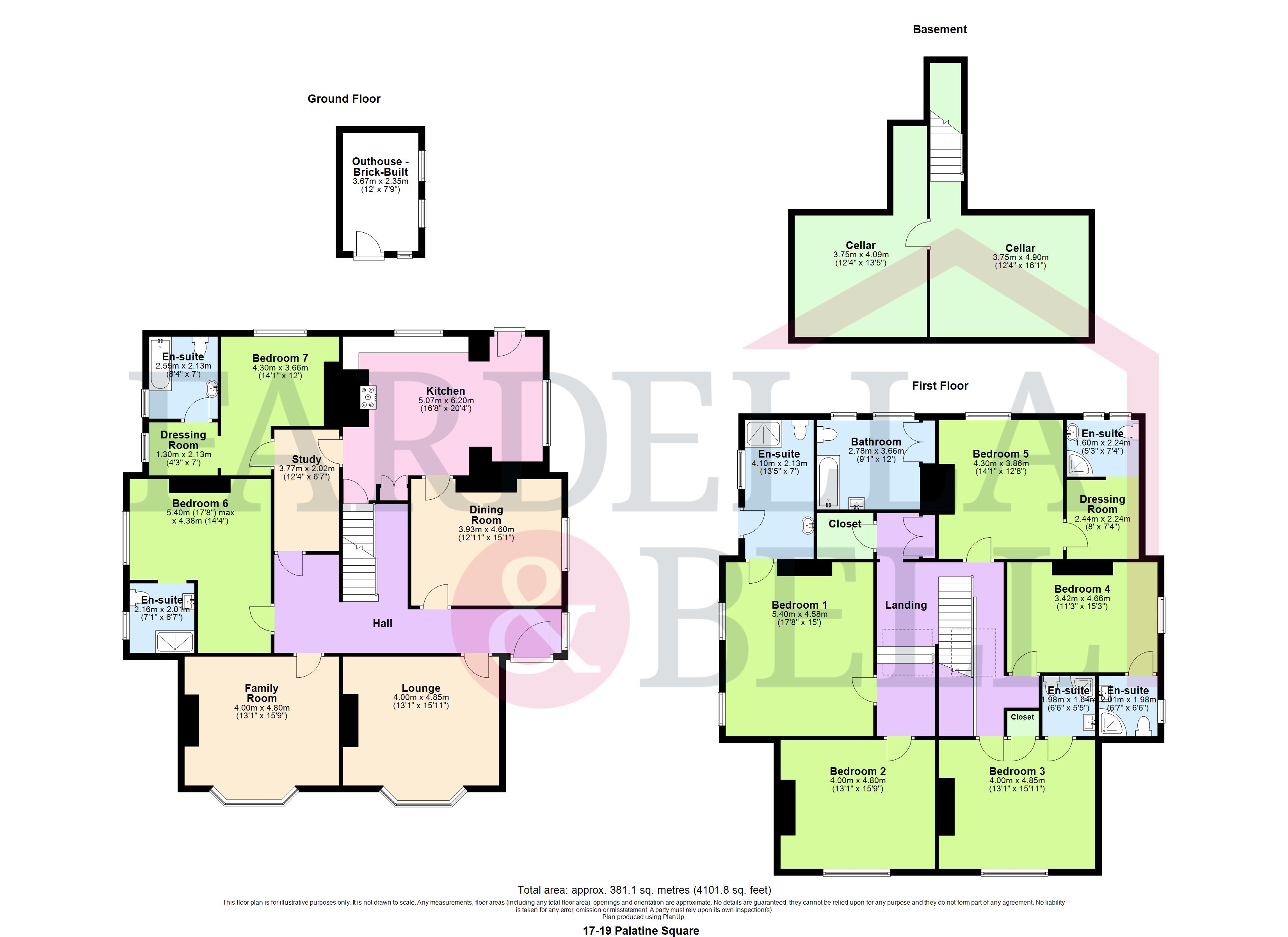 The accommodation is equally impressive, comprising seven bedrooms in total, with six bedrooms benefitting from en-suite facilities, alongside a separate main family bathroom, providing outstanding convenience and privacy throughout. A further benefit is the potential to utilise the ground floor bedroom with its own en-suite as a more independent area of the home, ideal for those wanting a dedicated space for parents, older children, or teenagers to enjoy a little extra privacy while still being part of the main house. Additional internal features include a useful cellar, ideal for storage, and further ancillary space via a brick built outbuilding. The property also benefits from uPVC double glazing throughout and gas central heating, complementing the traditional character with modern practicality.