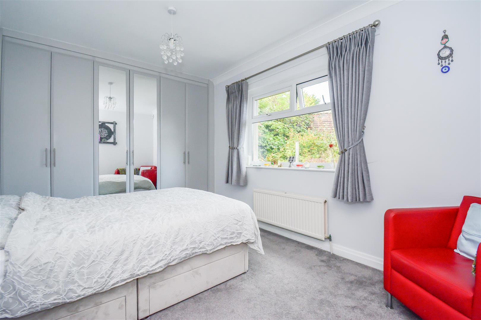 Dimensions: 3.84m measured to wardrobes x 3.00m (12'7 measured. A double room with a PVCu double glazed window looking out to the rear, there is a ceiling light point, ceiling coving, central heating radiator and a bank of fitted floor to ceiling part mirror fronted wardrobes.