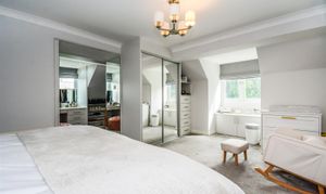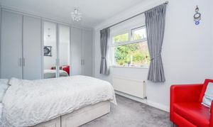 Dimensions: 5.97m into bay x 3.66m (19'7 into bay x 12'0). Another good-sized double room with a walk-in bay having PVCu double glazed windows looking out over the garden and with window seat beneath, there is access to the loft, air conditioning unit, central heating radiator, fitted sliding door mirror fronted wardrobe with adjacent drawers and storage shelves and from the master bedroom there is a mirrored doorway giving access to a bespoke fitted dressing room.